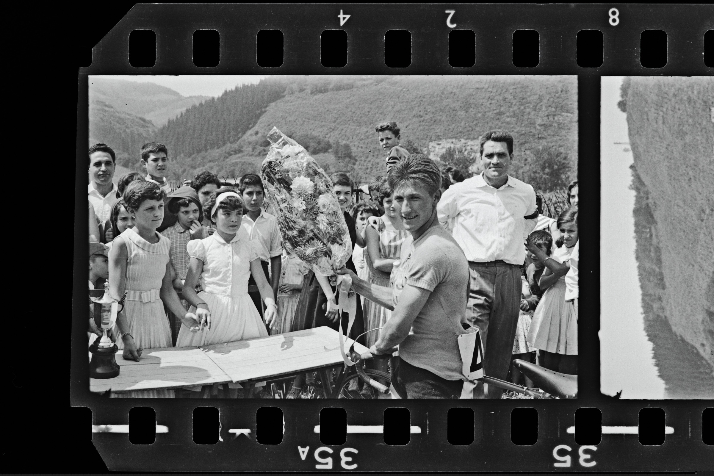 Ciclista recogiendo el ramo de flores | Ciclismo San Lorenzo. Vencedor: |
