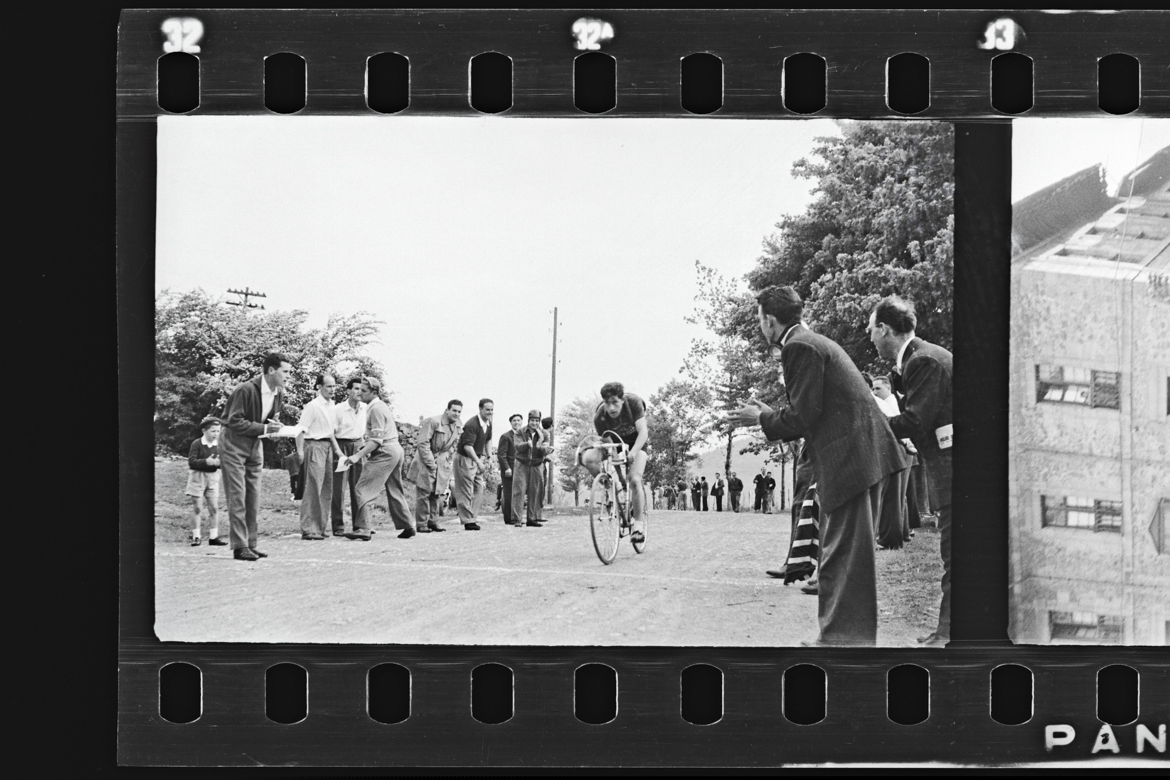 | Ciclista pasando por el puerto. Público y a la izquierda el juez | Ciclismo Pascuas de Pentecostés. Vencedor: Aspuru |