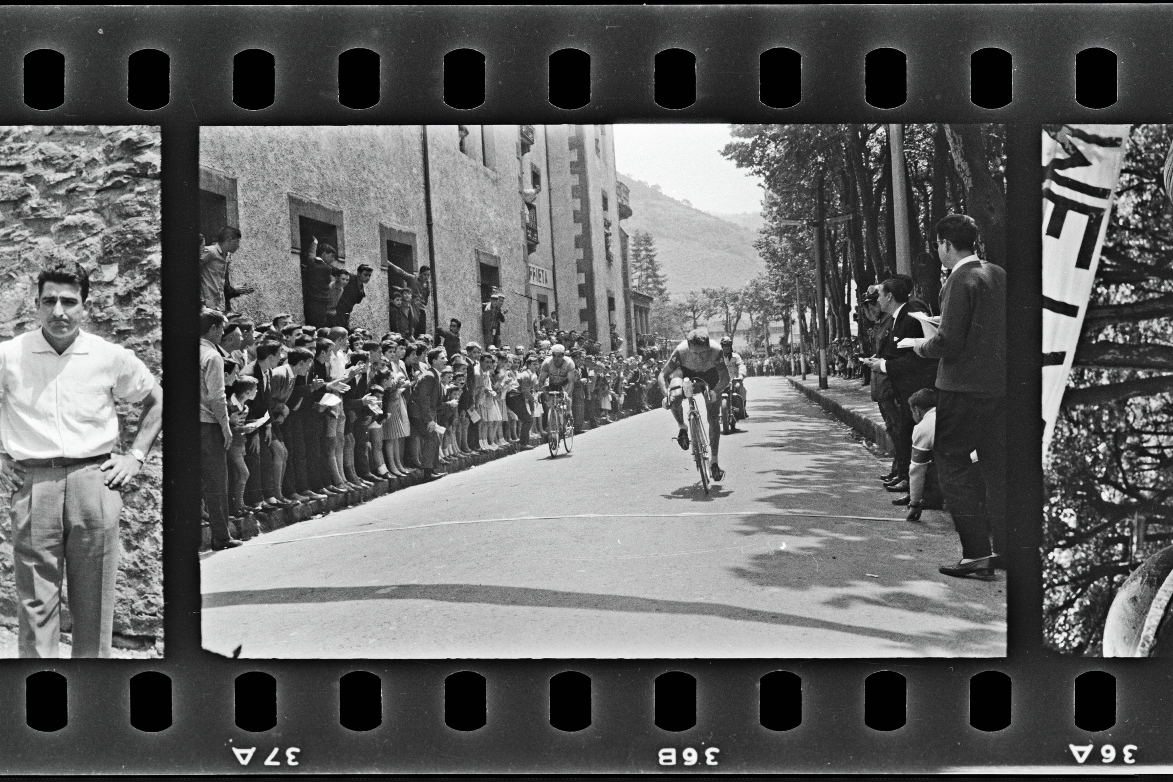 | Ciclistas llegando a meta seguido de una moto | Ciclismo Pascuas de Pentecostés. Vencedor: |