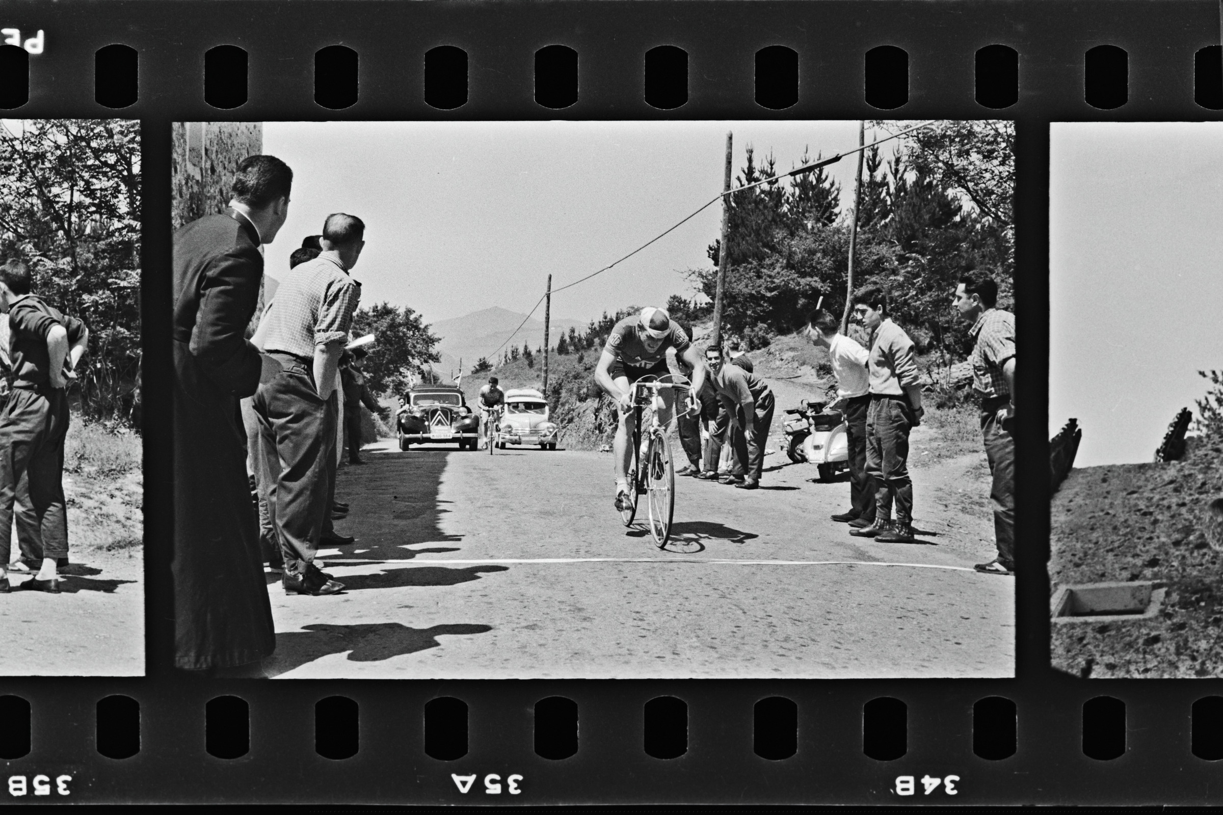 | Ciclista subiendo un puerto: detrás otro ciclista y dos coches | Ciclismo Pascuas de Pentecostés. Vencedor: |