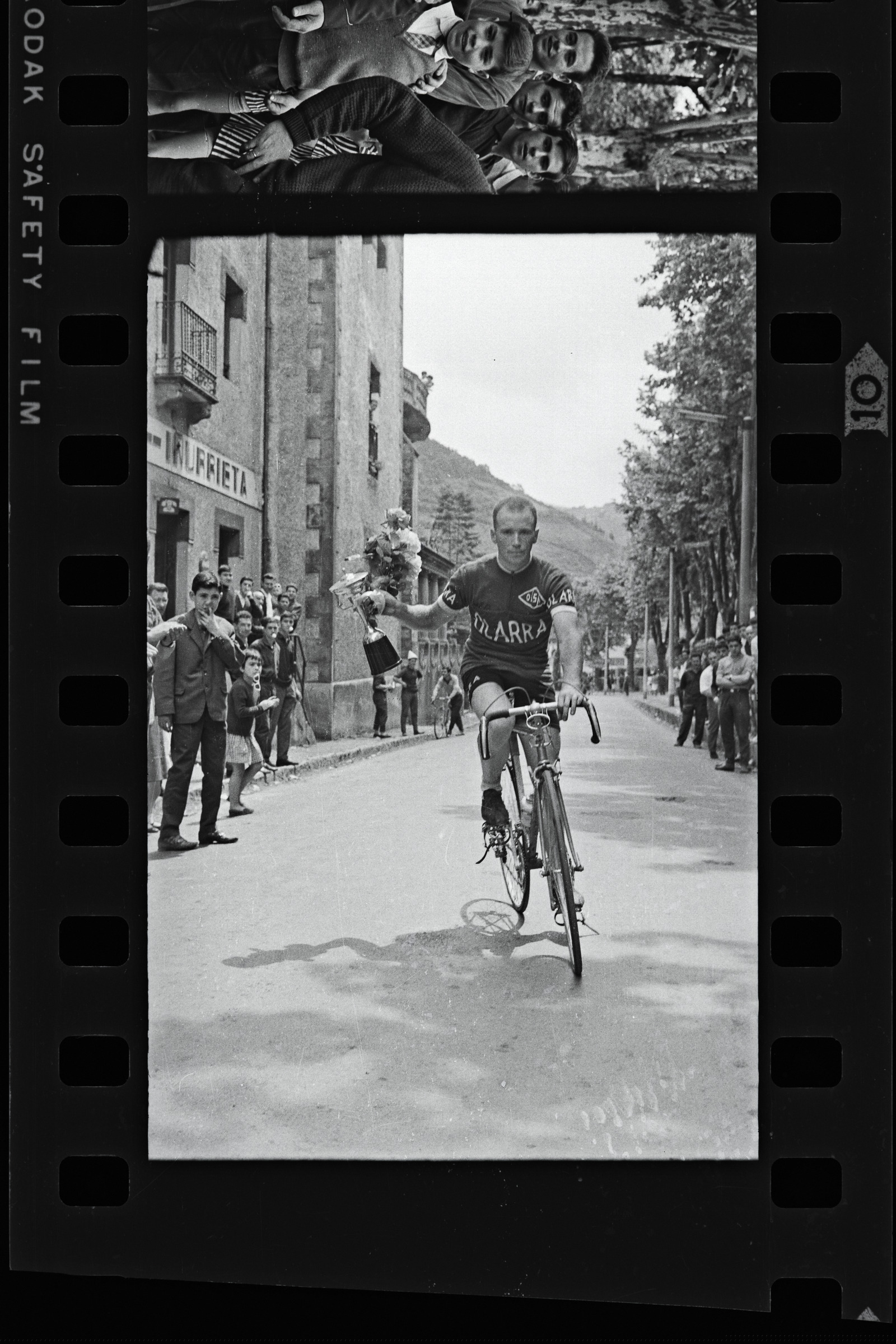 | Ciclista en paso de honor con el ramo flores y copa | Ciclismo. Pascuas de Pentecostés. Vencedor: 17, 18 y 19 de mayo de 1964 |
