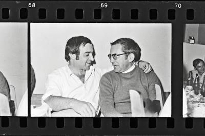Homenaje a Jesús Aranzabal en Oxirondo: dos hombres hablando | Sociedad Oxirondo. Homenaje a J. Aranzabal |