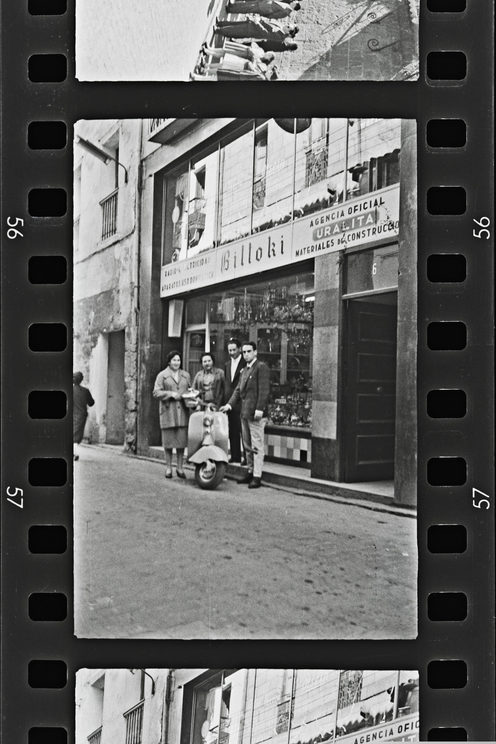 | Motoristas frente a la tienda Biltoki | Entierro de J. M Martínez Zumalabe, alcalde de Vergara octubre 1958 |