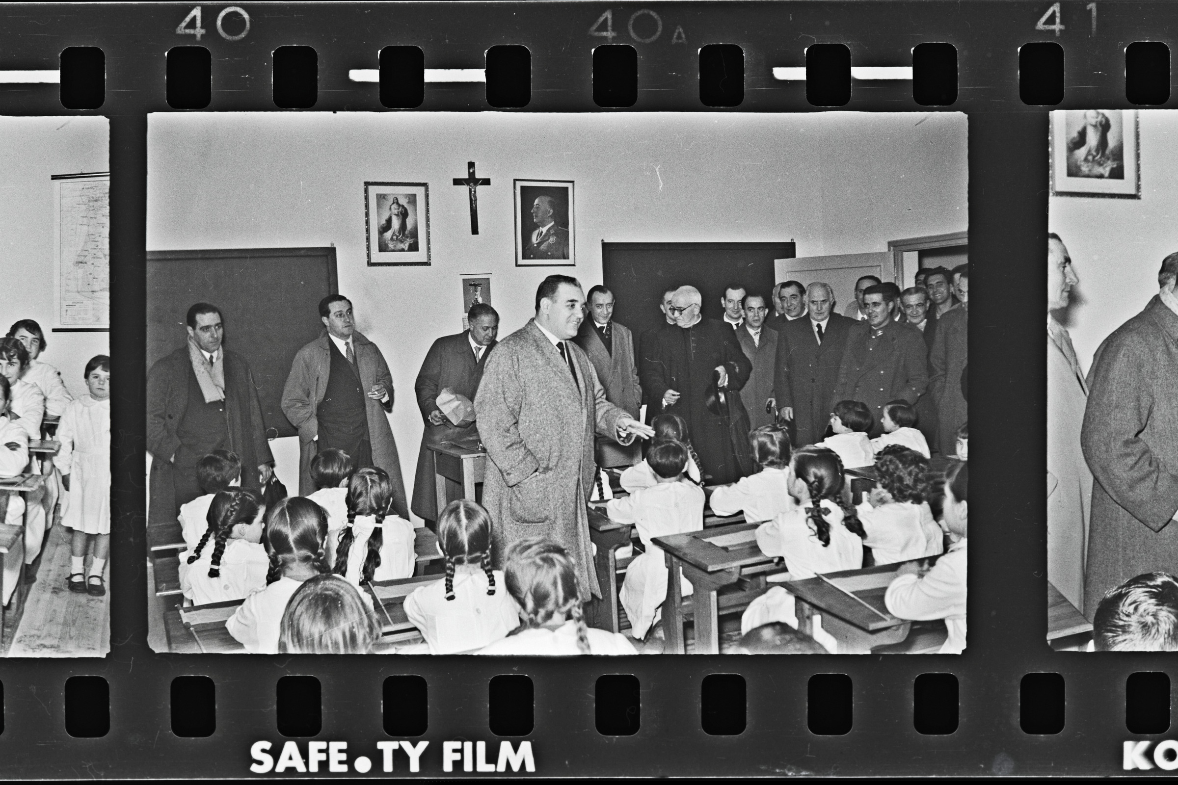 Bendición e inauguración de la escuela de Angiozar: alumnos | Escuelas Anguiozar - Inauguración 18 enero 1958 |