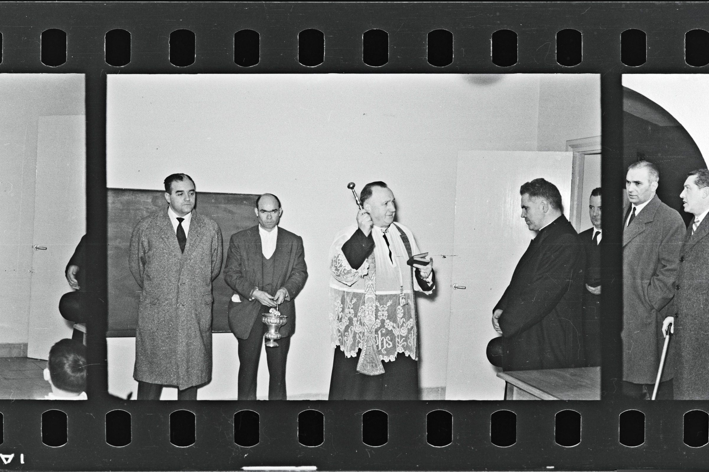 | Inauguración y bendición de la escuela de Zubieta: el sacerdote bendice | Bendición escuelas abril- 1961 |