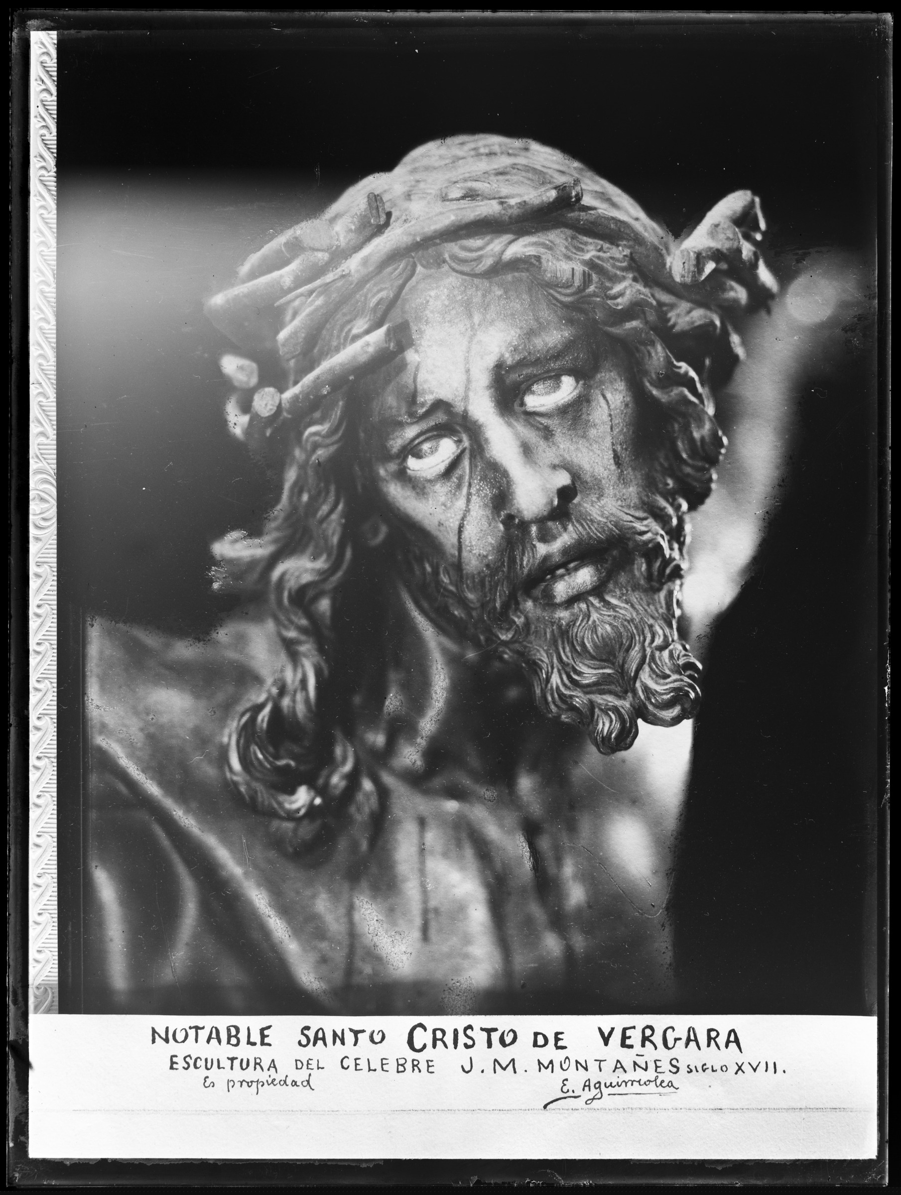 Imagen del Santo Cristo (rostro) | Notable Santo Cristo de Vergara. Escultura del célebre J.M. Montañes. Siglo XVII. Es propiedad E. Aguirreolea. [m.s.v.] |