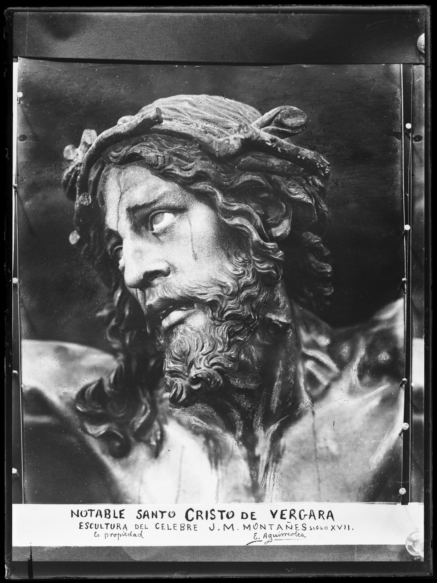 Imagen del Santo Cristo (rostro) | Notable Santo Cristo de Vergara. Escultura del célebre J.M. Montañes. Siglo XVIII. Es propiedad E. Aguirreolea. [m.s.v.] |