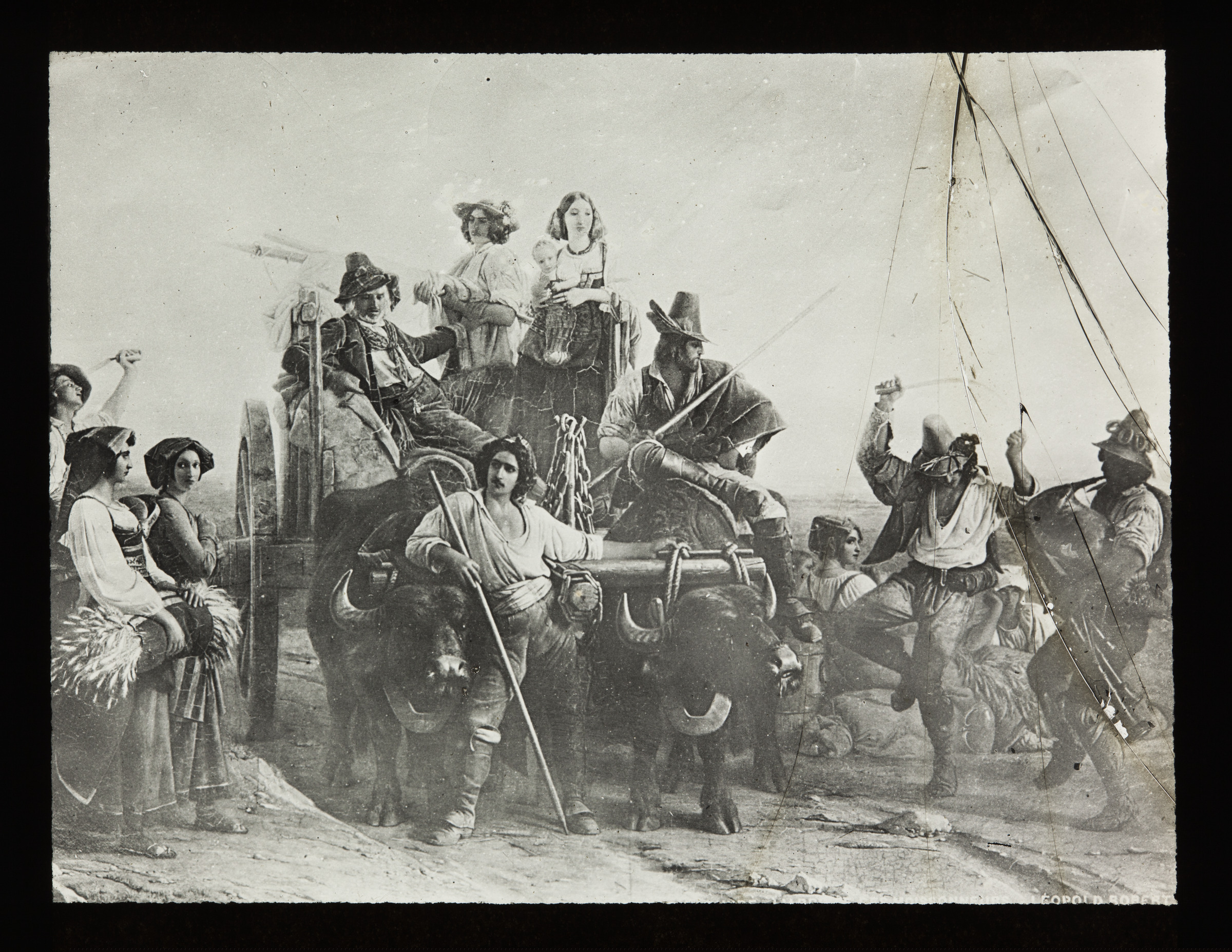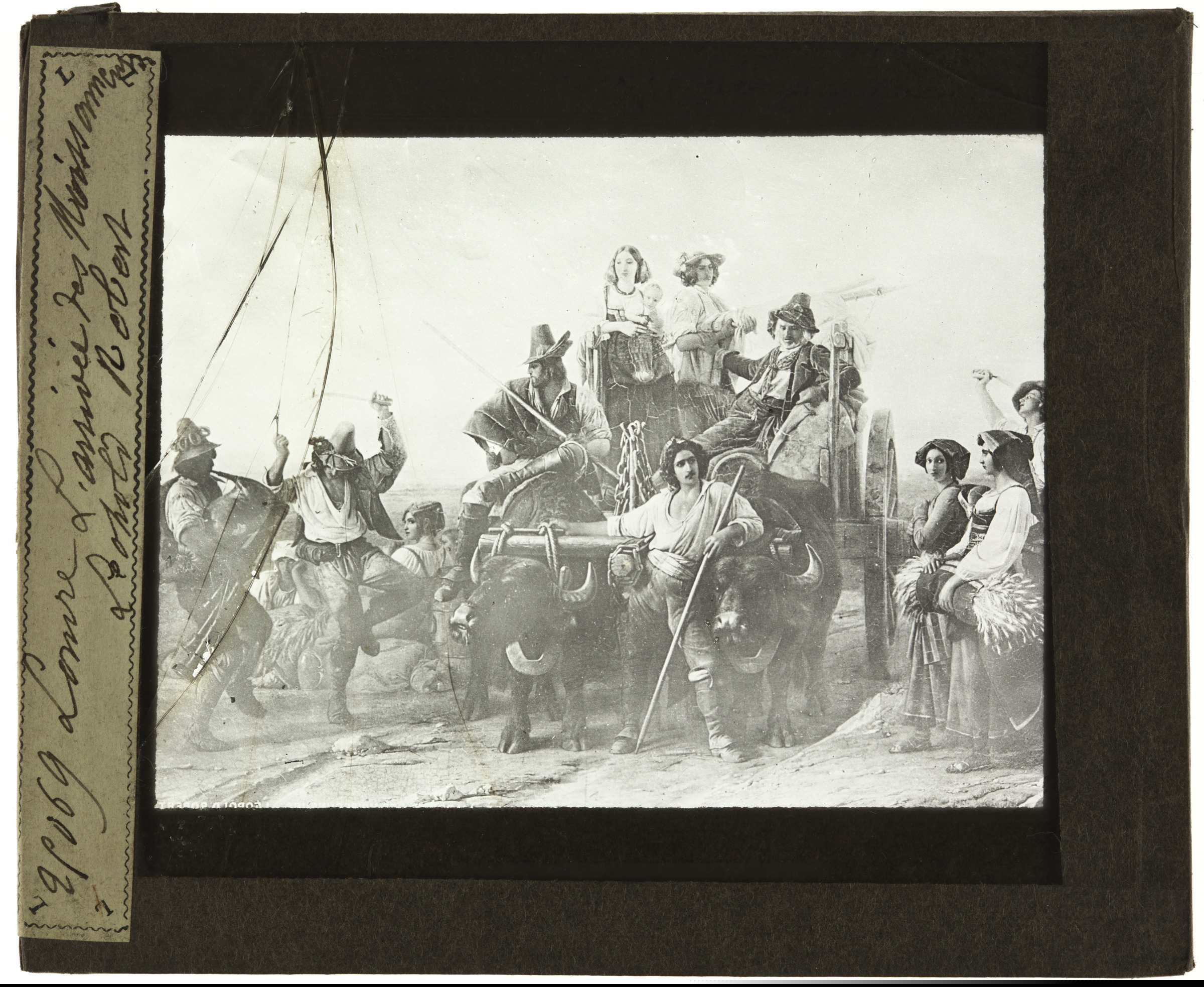 | Pintura de la "llegada de los seglares" de Leopold Robert en el Museo del Louvre | 25069. Louvre. L´arrivée des moissoneurs Leopold Rober.[m.s.v.]. |