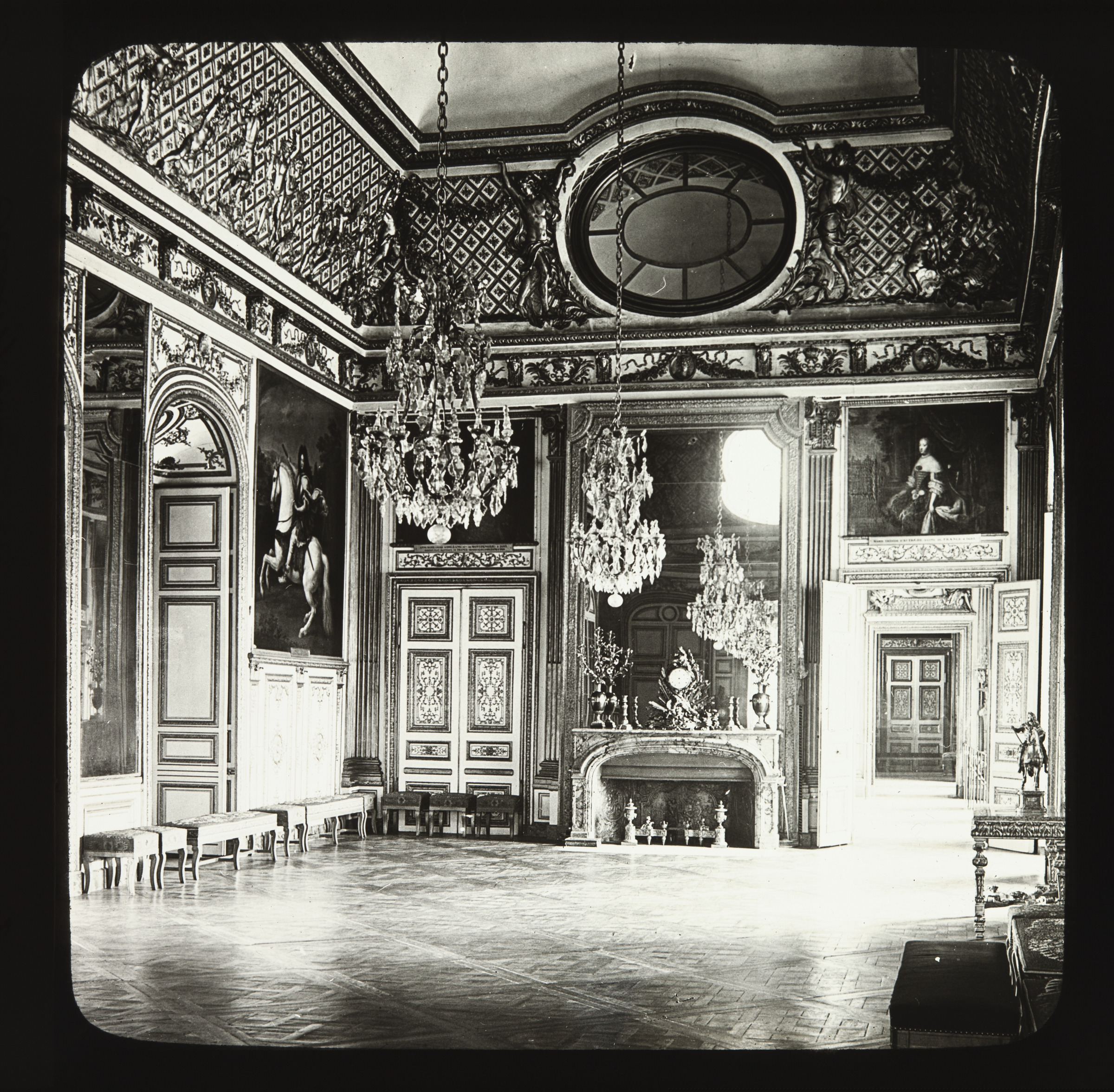| Sala de estar llamada El ojo del buey de Versalles | 3078. Versalles salon de l' Oeil de Boeuf. [m.s.v.] Vues et sujets divers pour Appareils de projection. J & A MOLTENI; PARIS Appareils de projection Fantasmagories Polyoramas [inp.r.] |