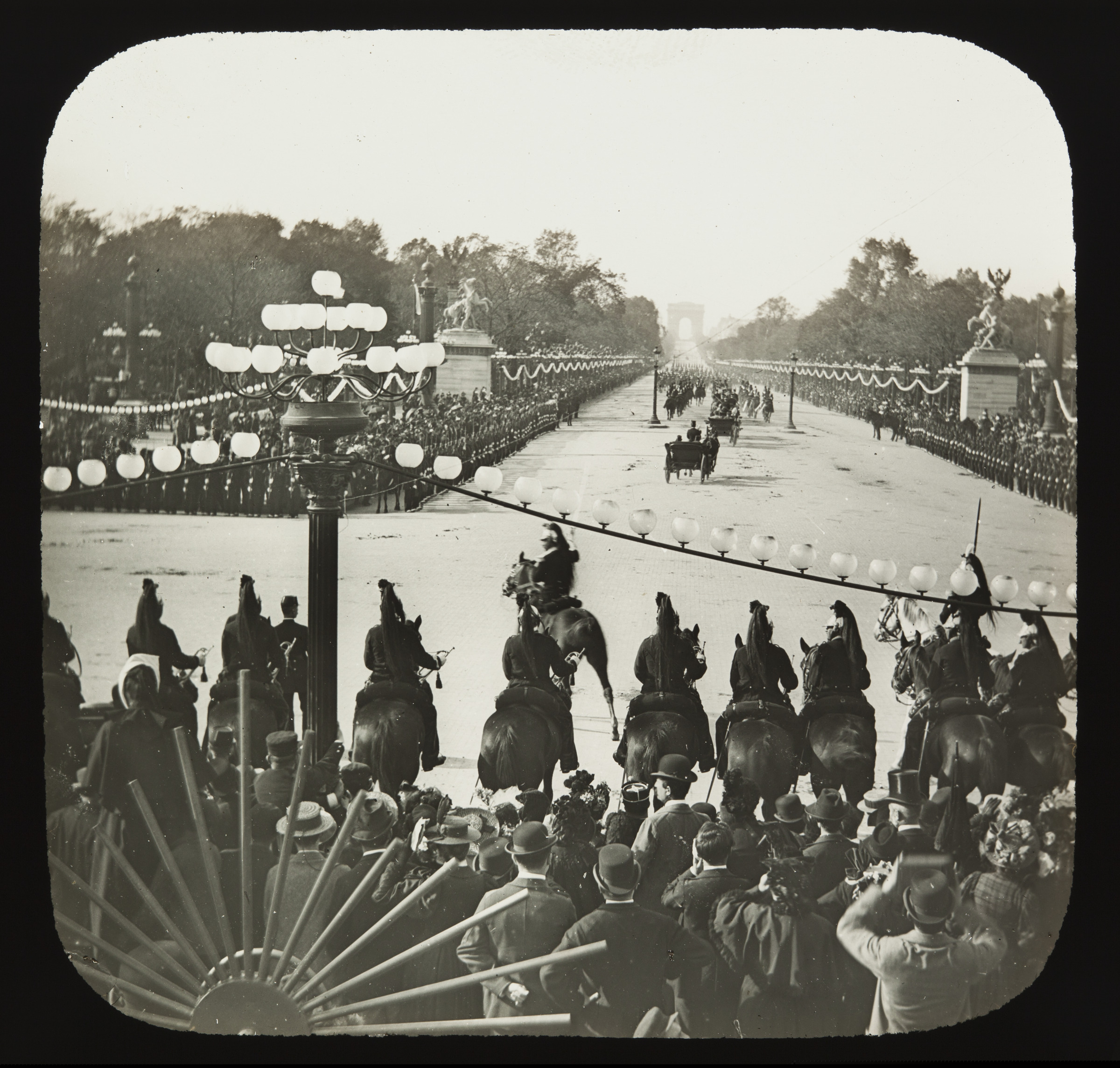 | Coche fúnebre del presidente Félix Faure saliendo de Campos Elíseos | 21947.Champs Elyseés Le Départ. [m.s.v.]. |