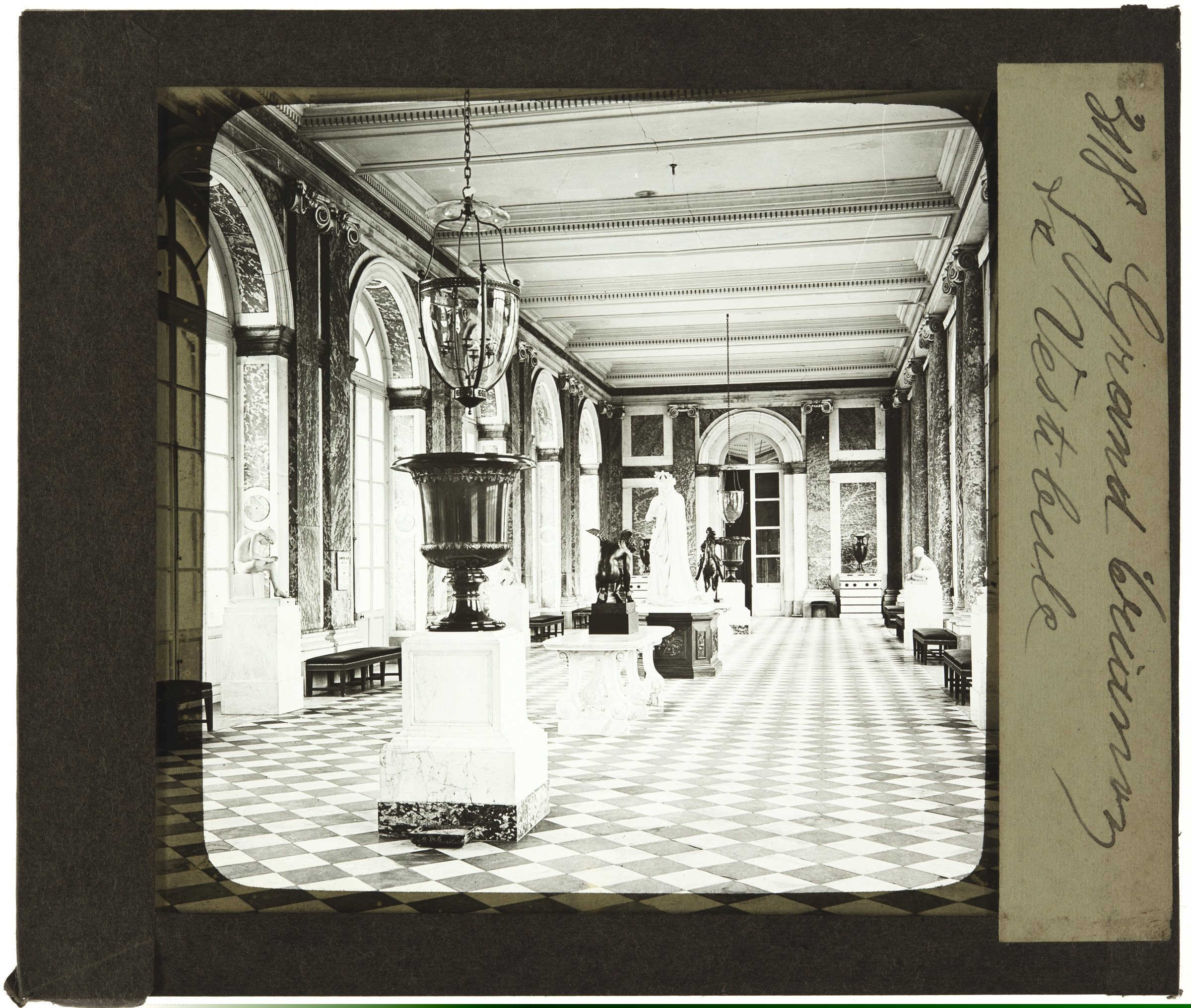 | El vestibulo de Grand Trianón en Versalles | 3118. Grand Trianón. Le vestibule. [m.s.v.]. Vues et sujets divers pour Appareils de projection. J & A MOLTENI; PARIS Appareils de projection Fantasmagories Polyoramas [imp.r] |