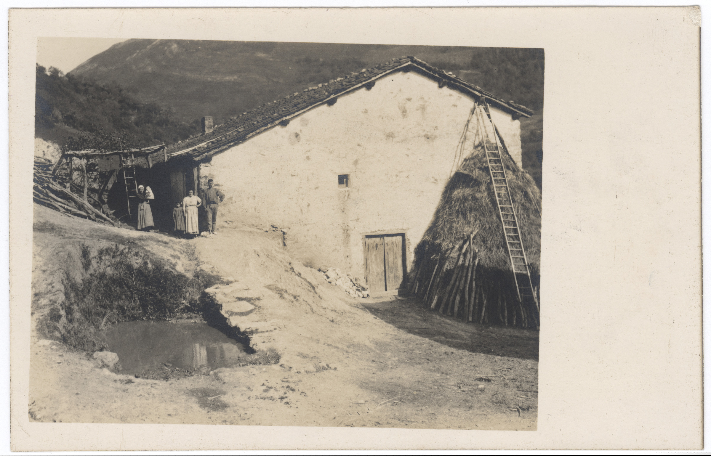 | Un grupo delante del caserío Aguirre de Lastur | Caserio Aguirre en Lastúr (Guipuzcoa), del Sr M. de Balzola, Conde del Valle. 25 Octubre 1913. [m.s.v.]. Carte postale, corespondance, Adresse R. Guilleminot, Boespflupg et Cie. Paris. [imp.v.] |