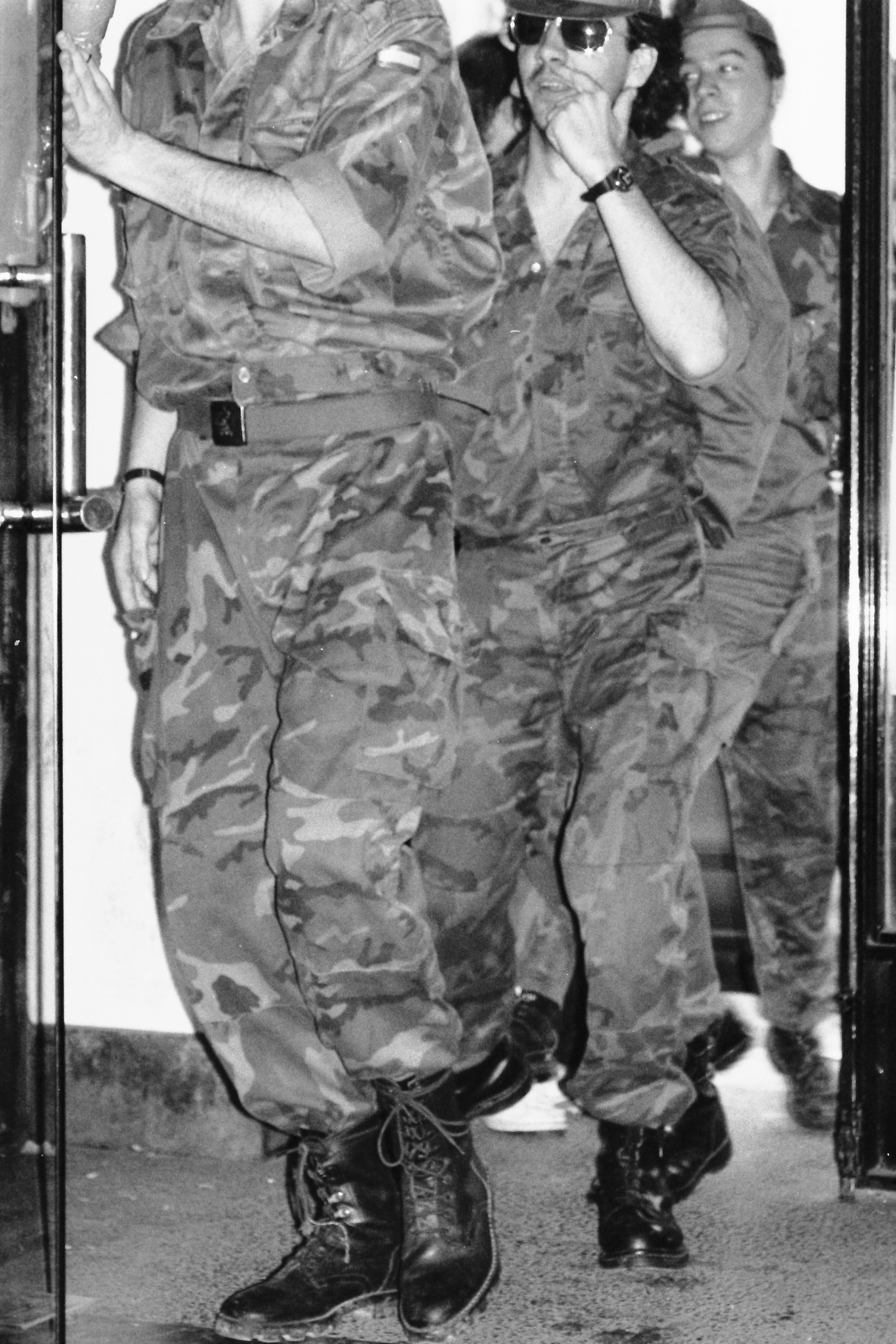 | Representación de una detención de la policía militar a un grupo de insumisos |