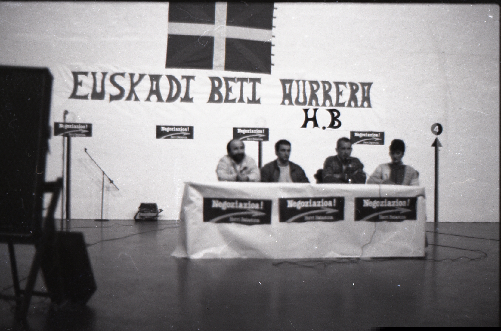 | Mitin de Herri Batasuna en el frontón municipal con el lema "Euskadi beti aurrera" |