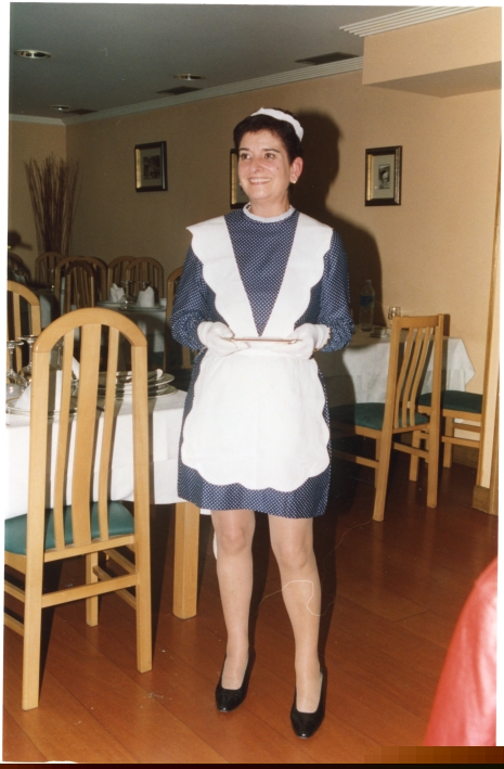 | Miembro del grupo teatral Ernai vestida de sirvienta como cuando interpretaban las obras teatrales |