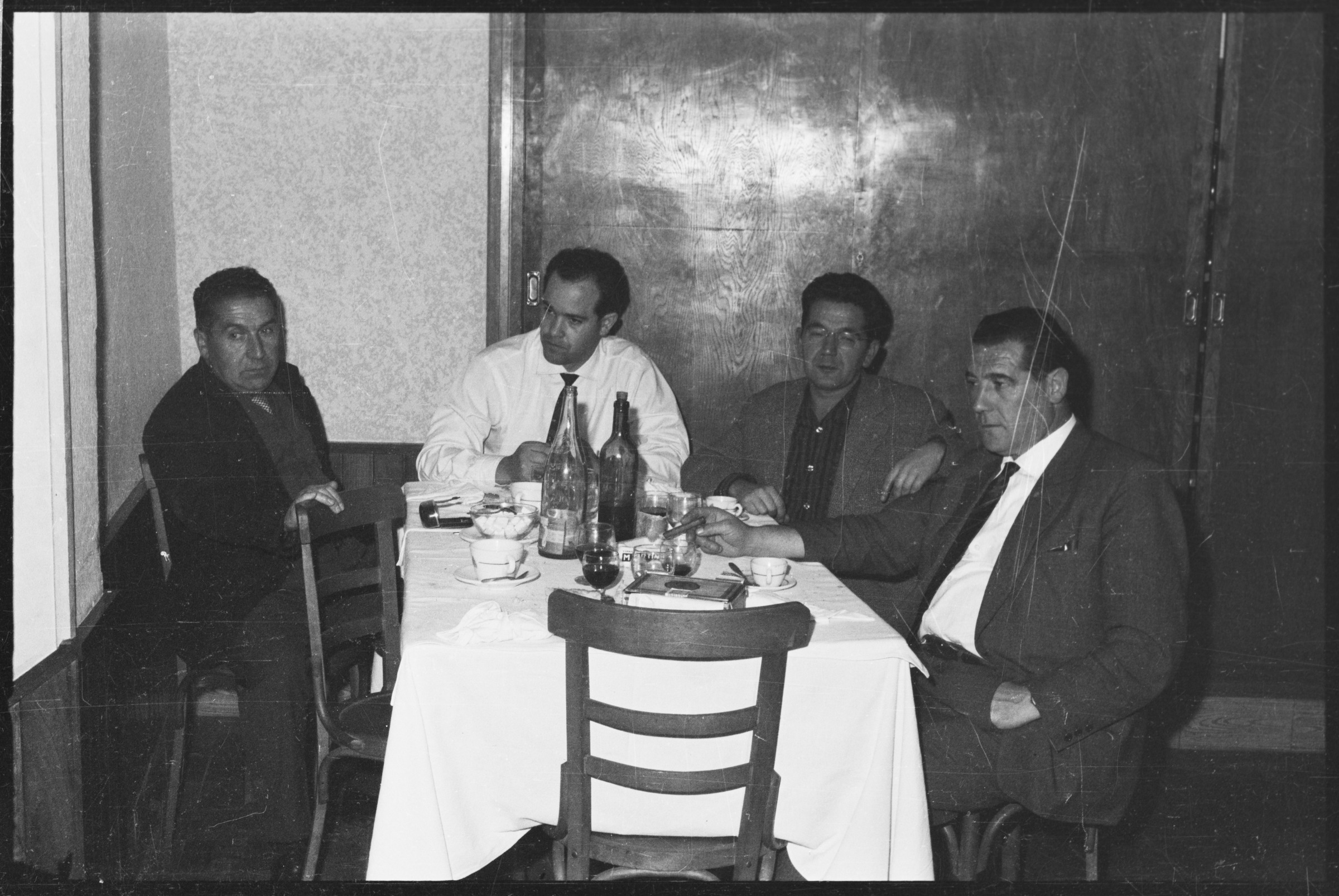 Un grupo de hombres en una comida