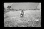 Un hombre, mujer y niño sentados en la hierba