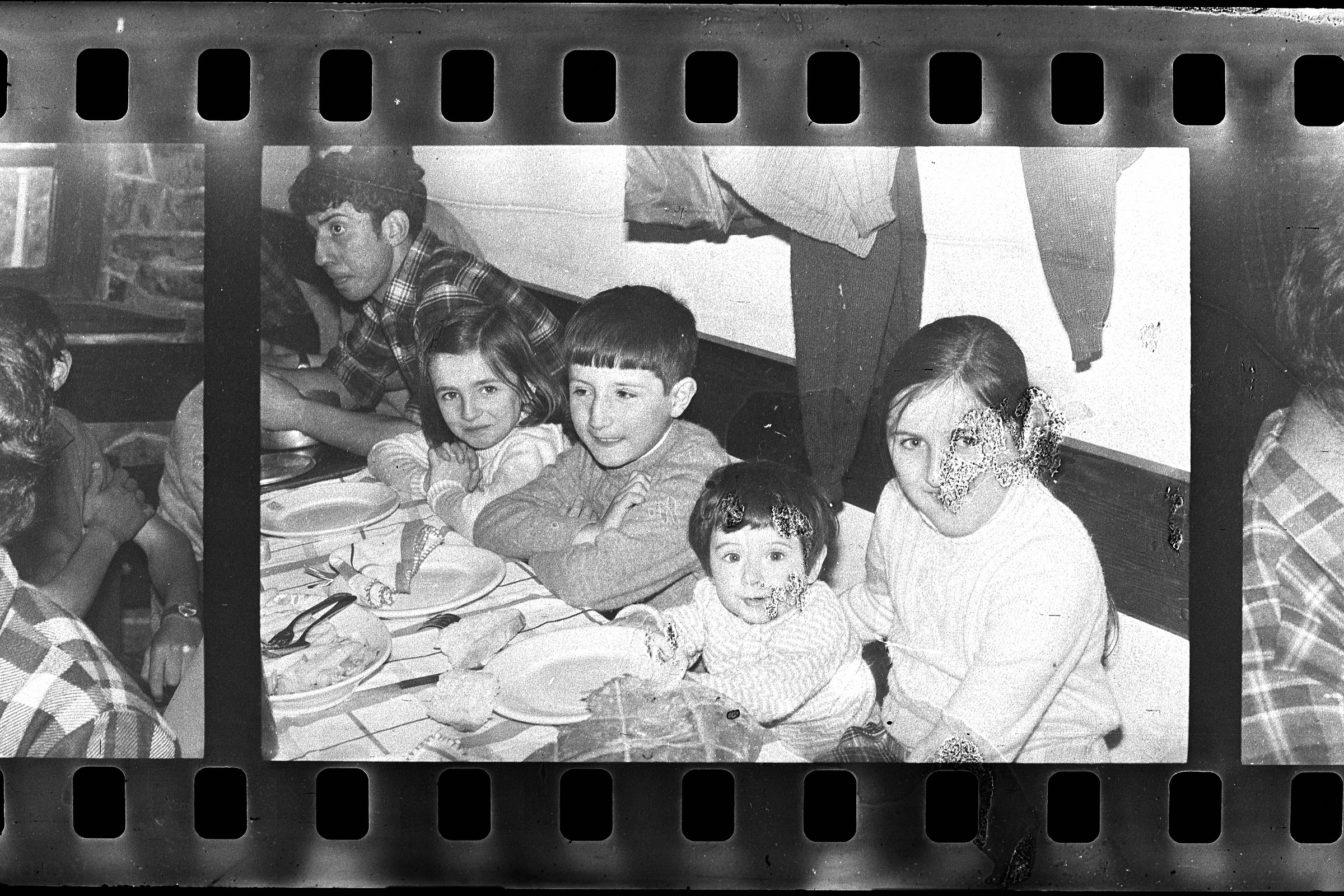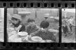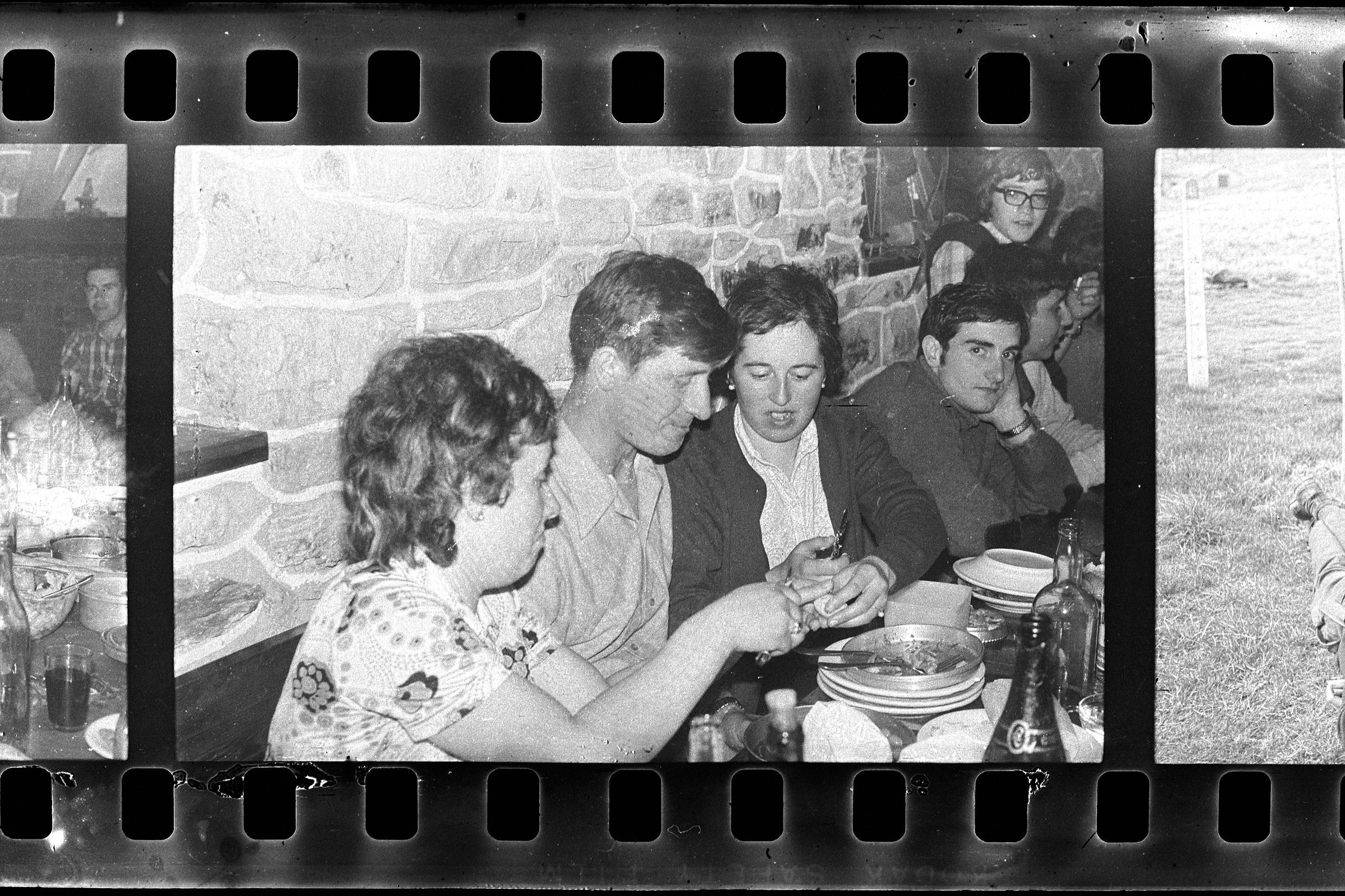 II Marcha montañera medida del Pol Pol: un hombre y niños y niñas comiendo de la sociedad Gorla.