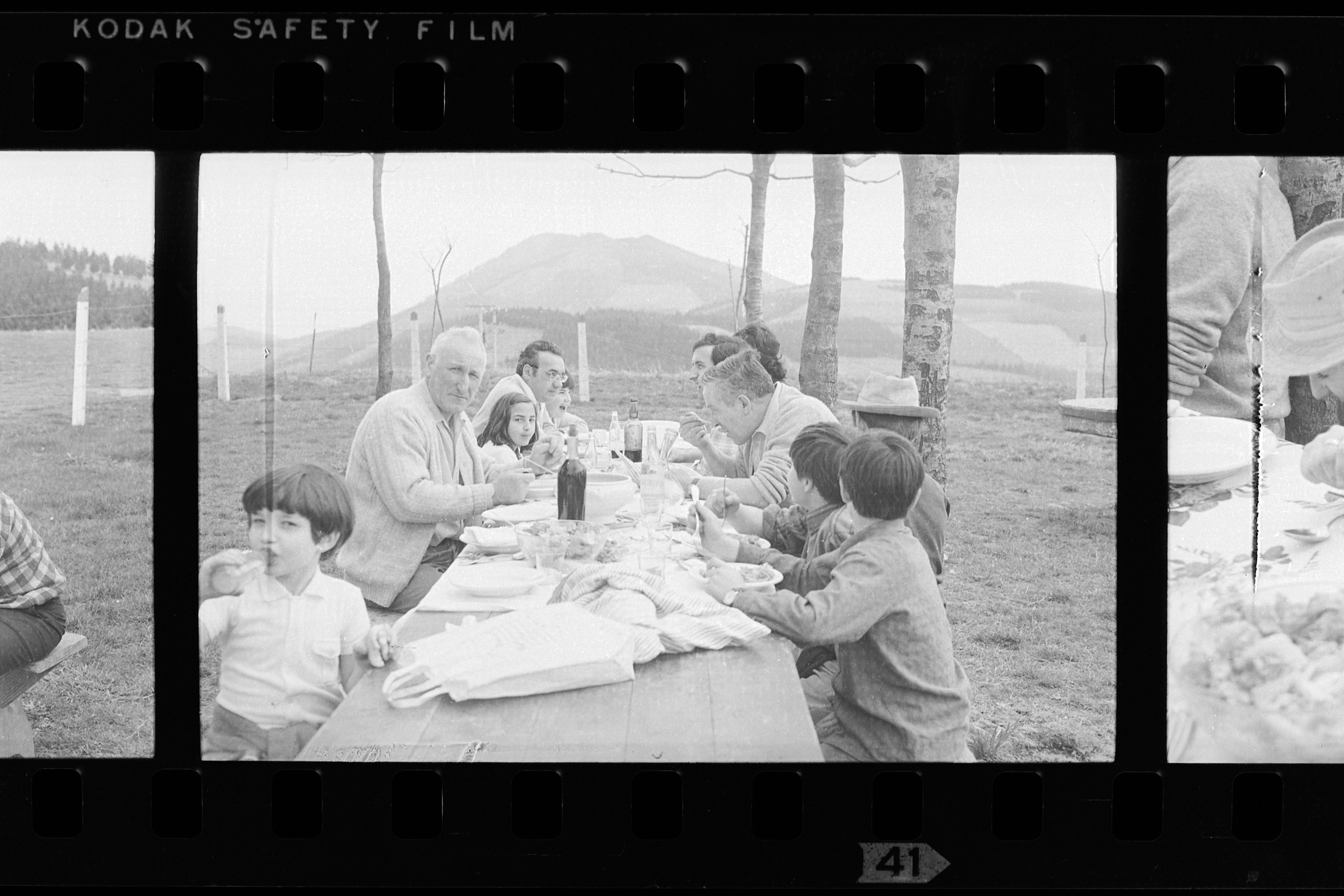 I Marcha montañera regulada del Pol Pol: un grupo de hombres comiendo en el exterior de la sociedad Gorla