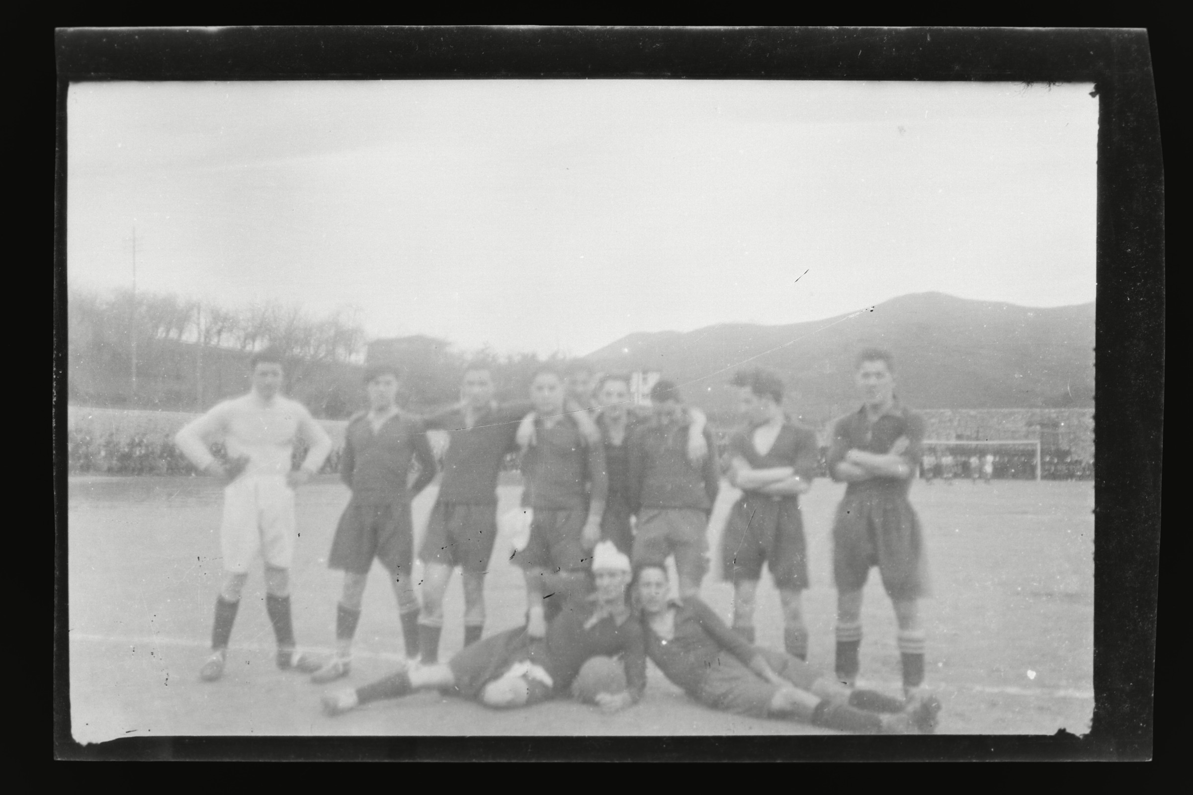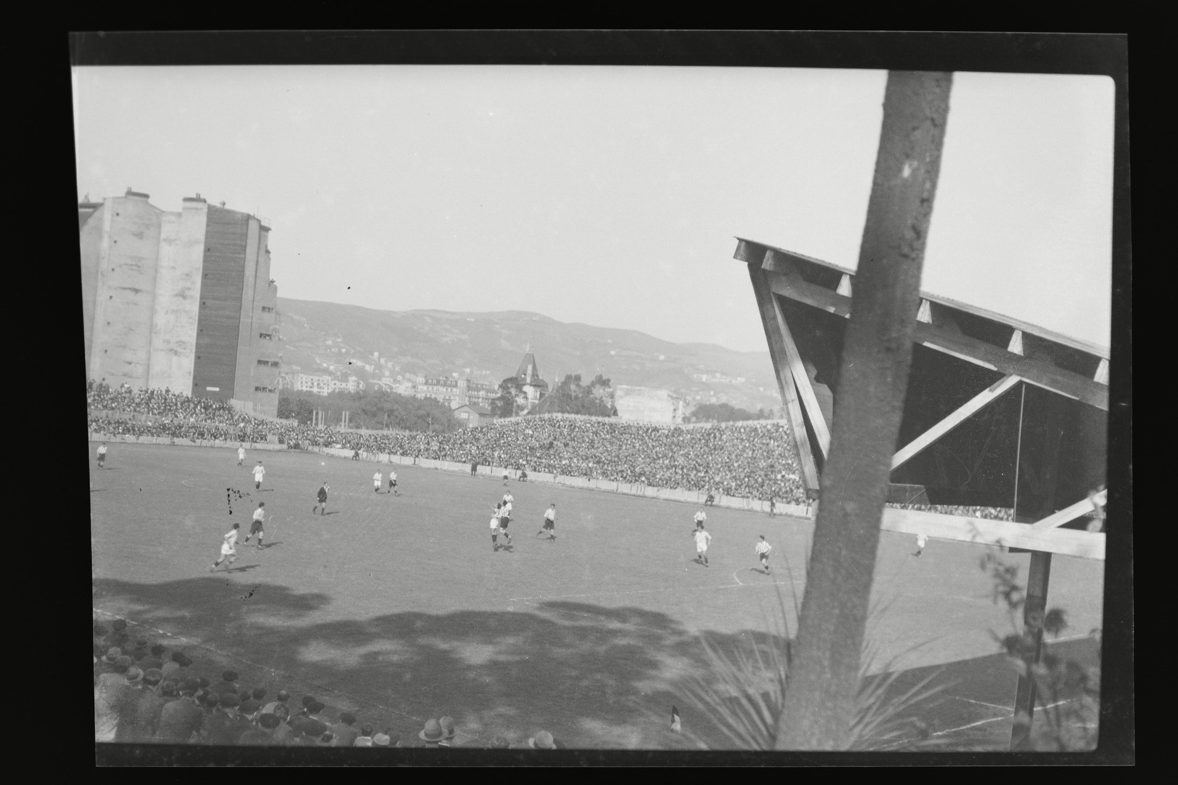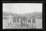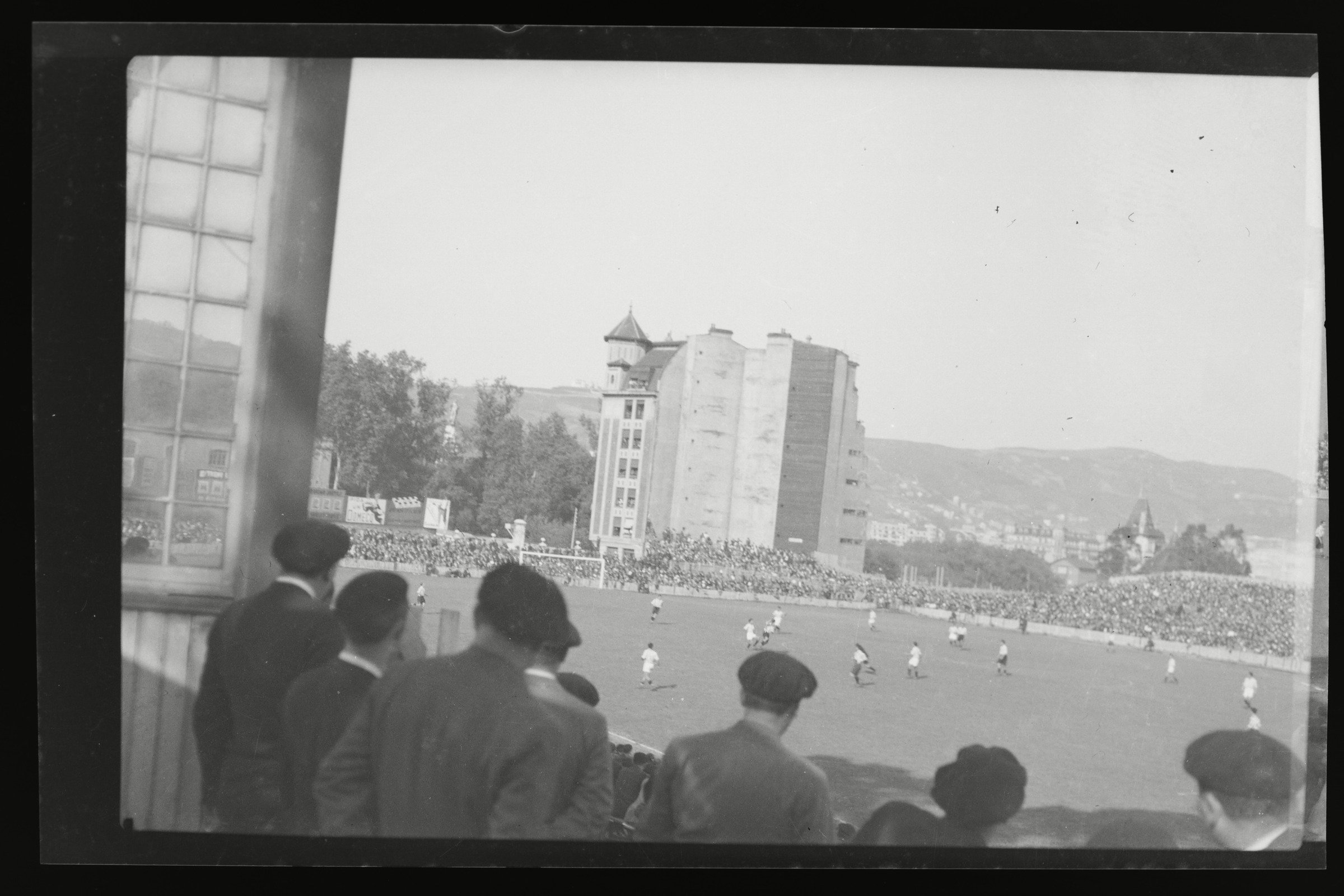 Equipo de fútbol y público en el campo de fútbol de Agorrosin