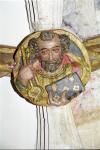 Detalle de la bóveda de crucería de la iglesia de Santa Marina: imagen de San Pedro