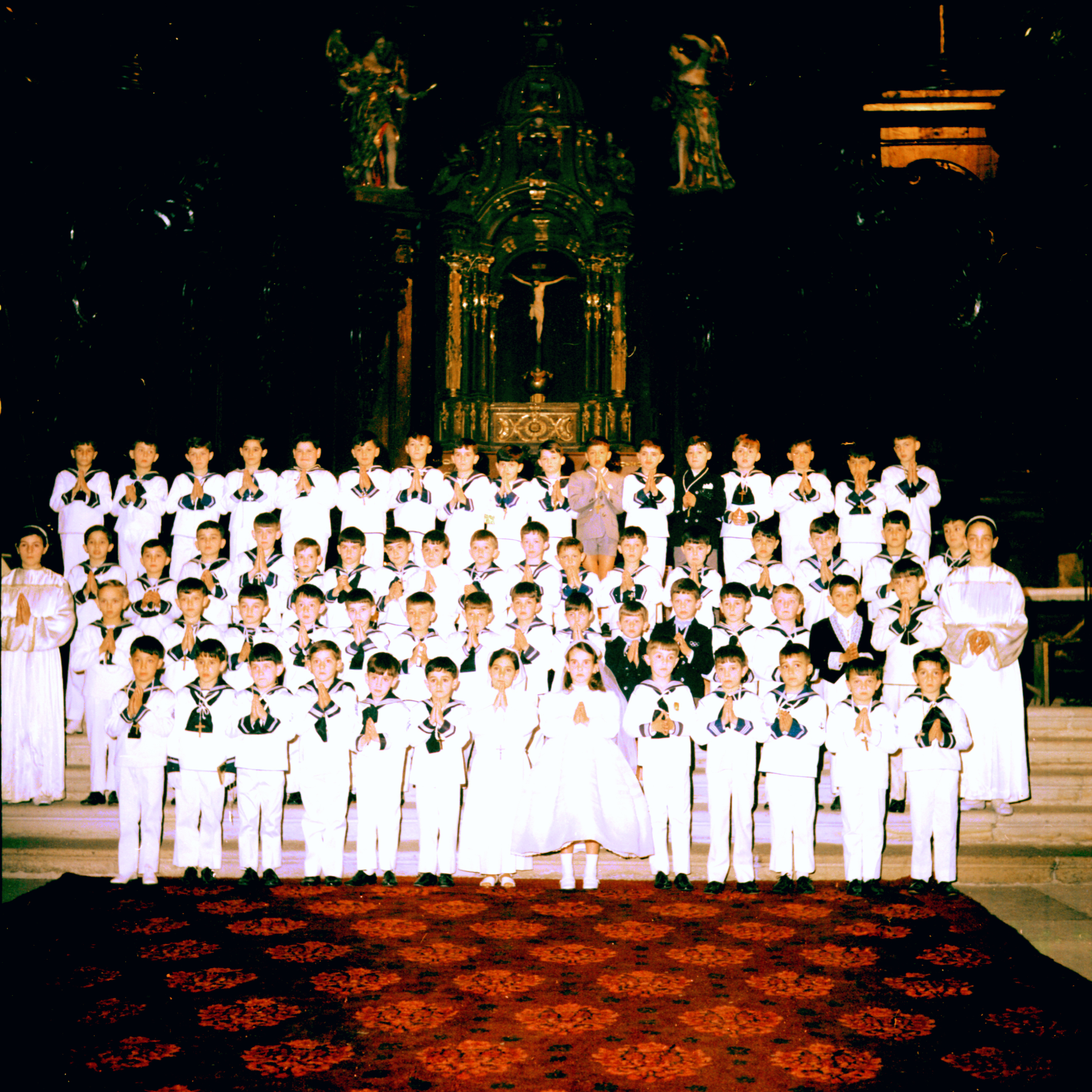 Grupo de niños en la primera comunión de Santa Marina (entre ellos hay algunas niñas)