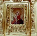 Sagrario del retablo del Rosario de la iglesia de Santa Marina: con una pintura de la Virgen en la puerta