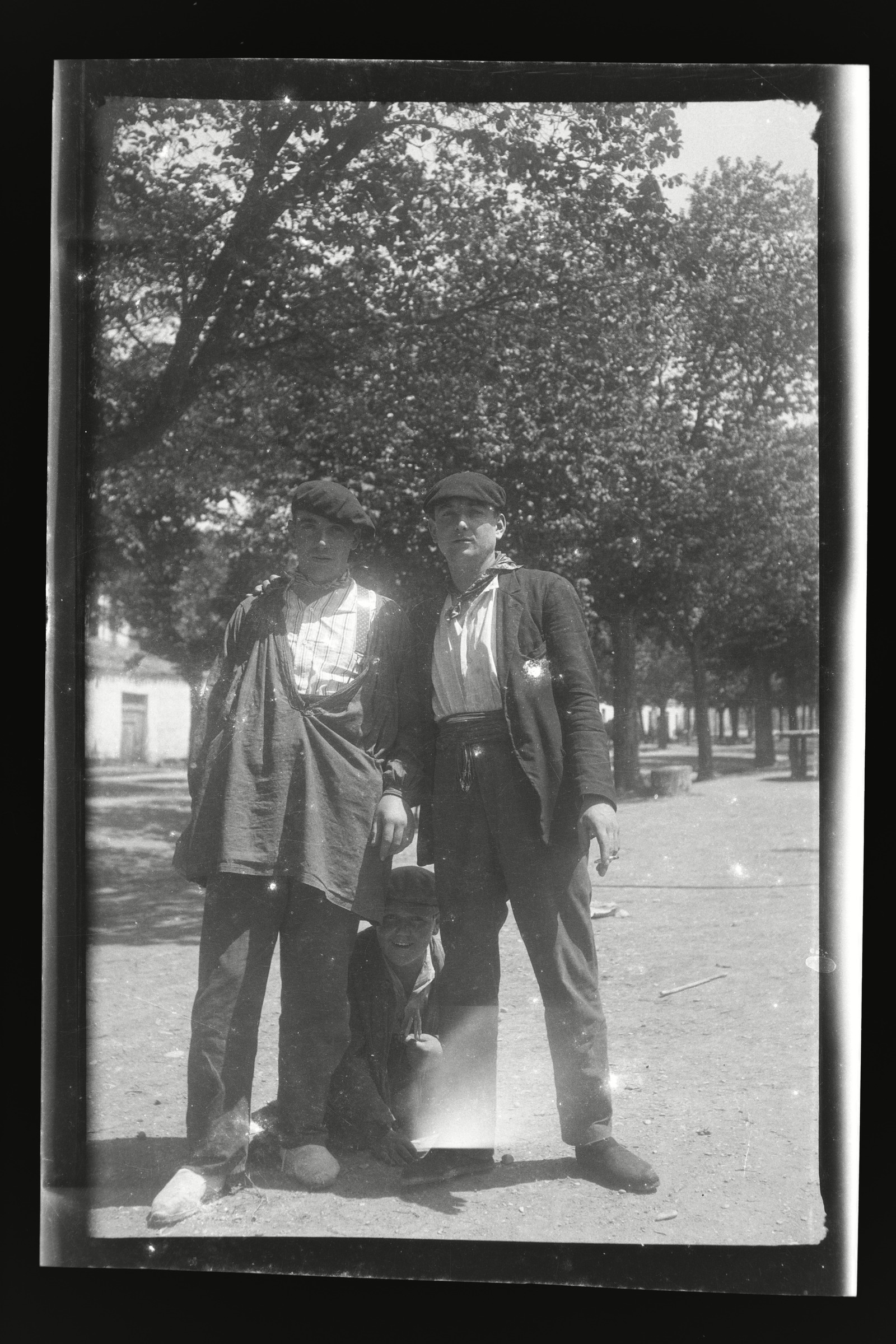 Grupo de hombres por la calle principal. Parece que vienen de los toros