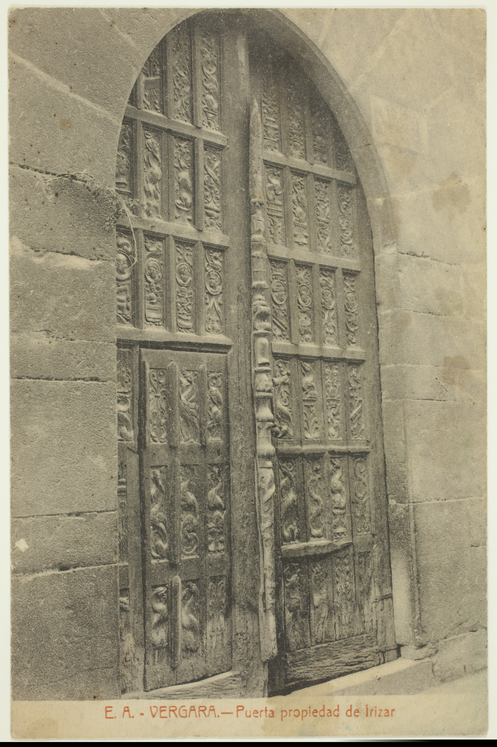 Arostegi etxeko ate landua (XVI. mendea) | E.A.- VERGARA. - Puerta propiedad de Irizar [imp. r.] |