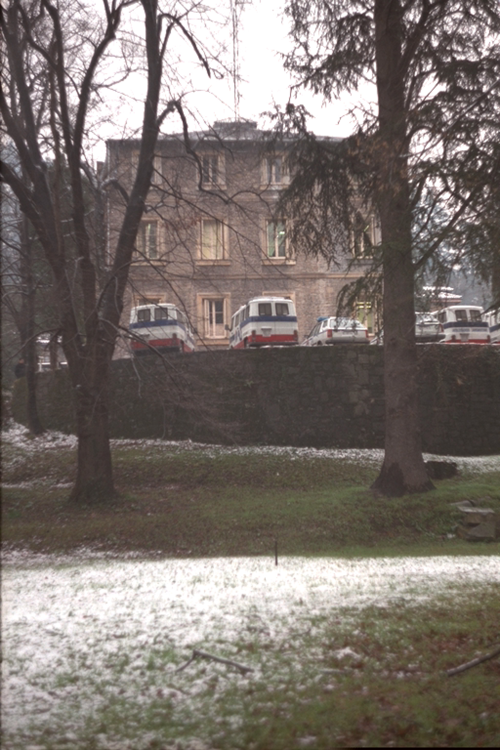 | Unzeta etxearen atzekaldea eta lorategia: ertzaintzaren kotxeak |