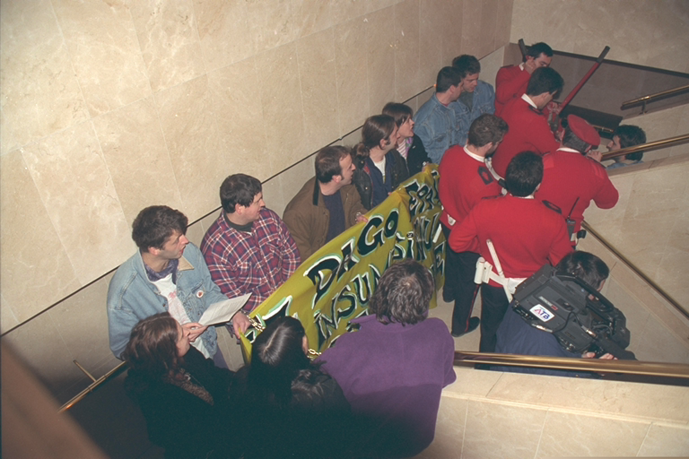 | Insumisoen protesta epaitegiko eskaileretan | Agentes de la Ertzantza procedieron a cortar las cadenas en la protesta de los insumisos [argazki-oina, arg.] |