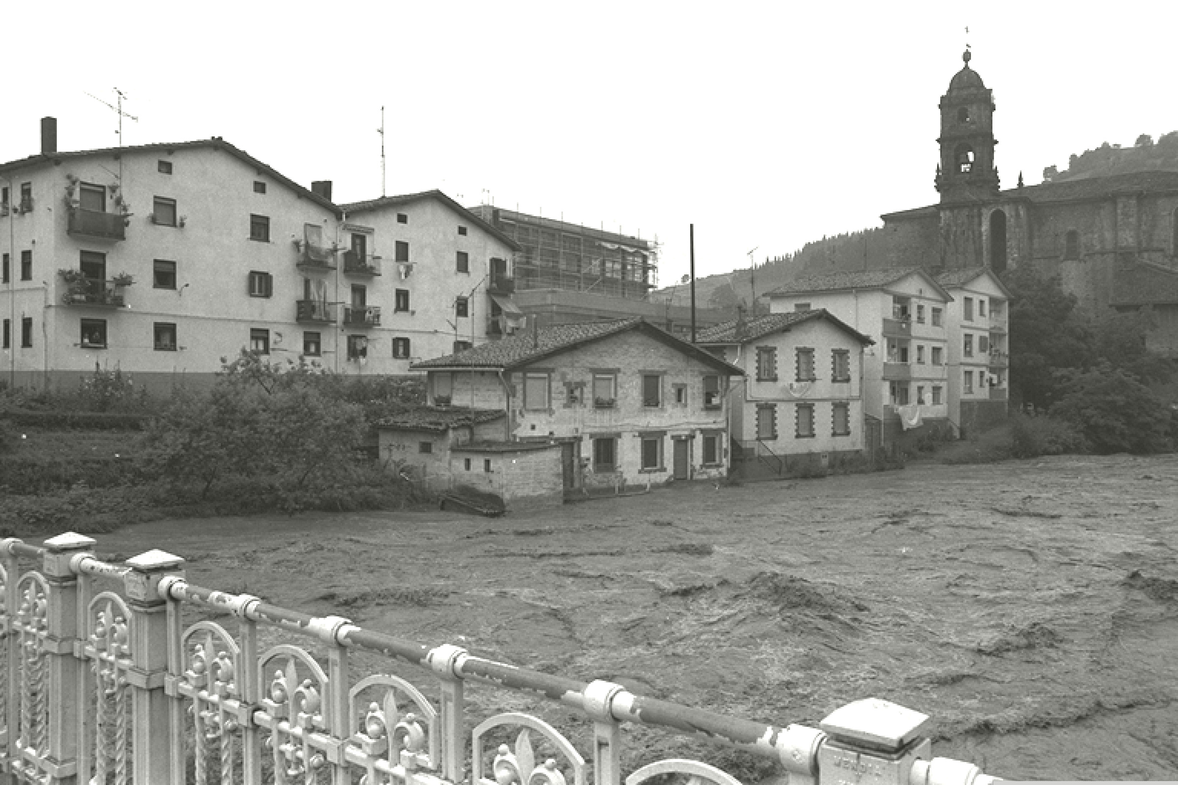 | Deba ibaia gainezka Katabia aldean Zurraderoko zubitik ikusita |
