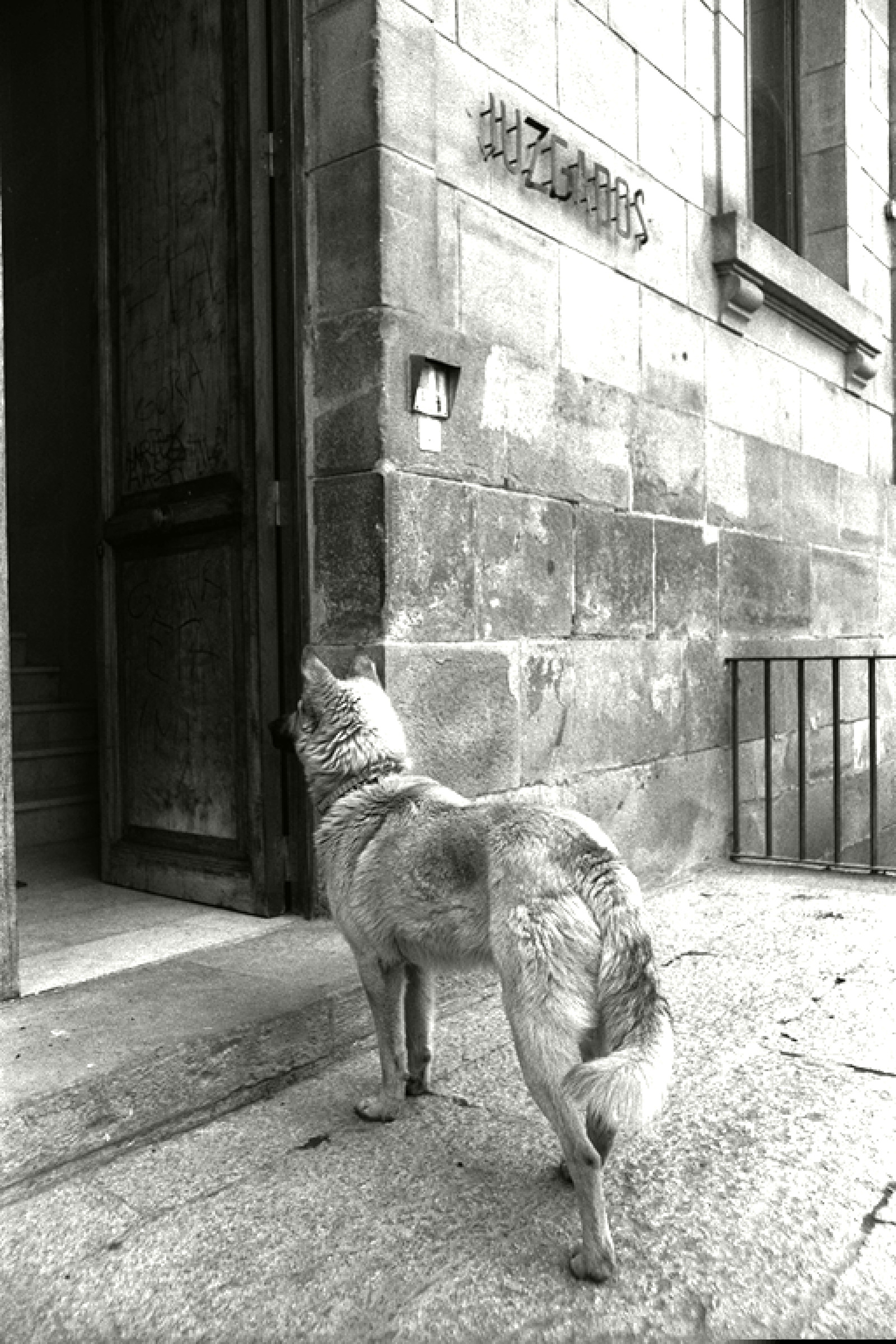 | Txakurra epaitegiaren atearen aurrean |