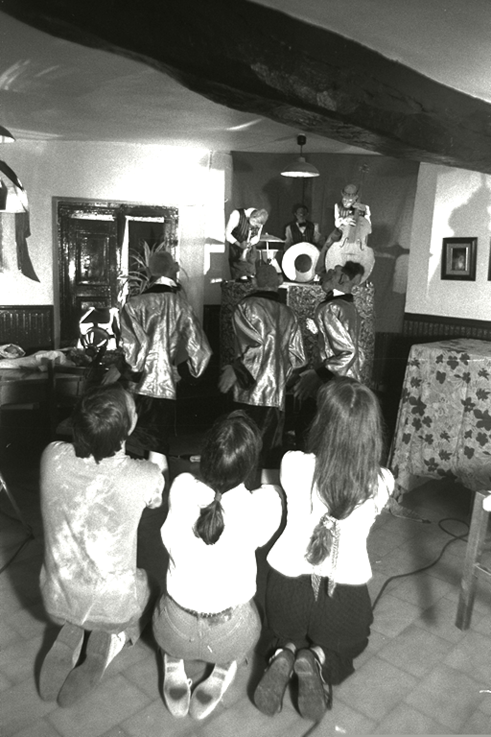 | Bideo grabazioa: Taun taun taldekoak txontxongiloen emanaldia erakusten. | El bar Infernukua, en su día de descanso, se ha convertido en un estudio de grabación. Es el escenario donde se desarrolla gran parte de la historia. Las marionetas, de esta forma, abandonan su espacio habitual [argazki-oina, arg.] |