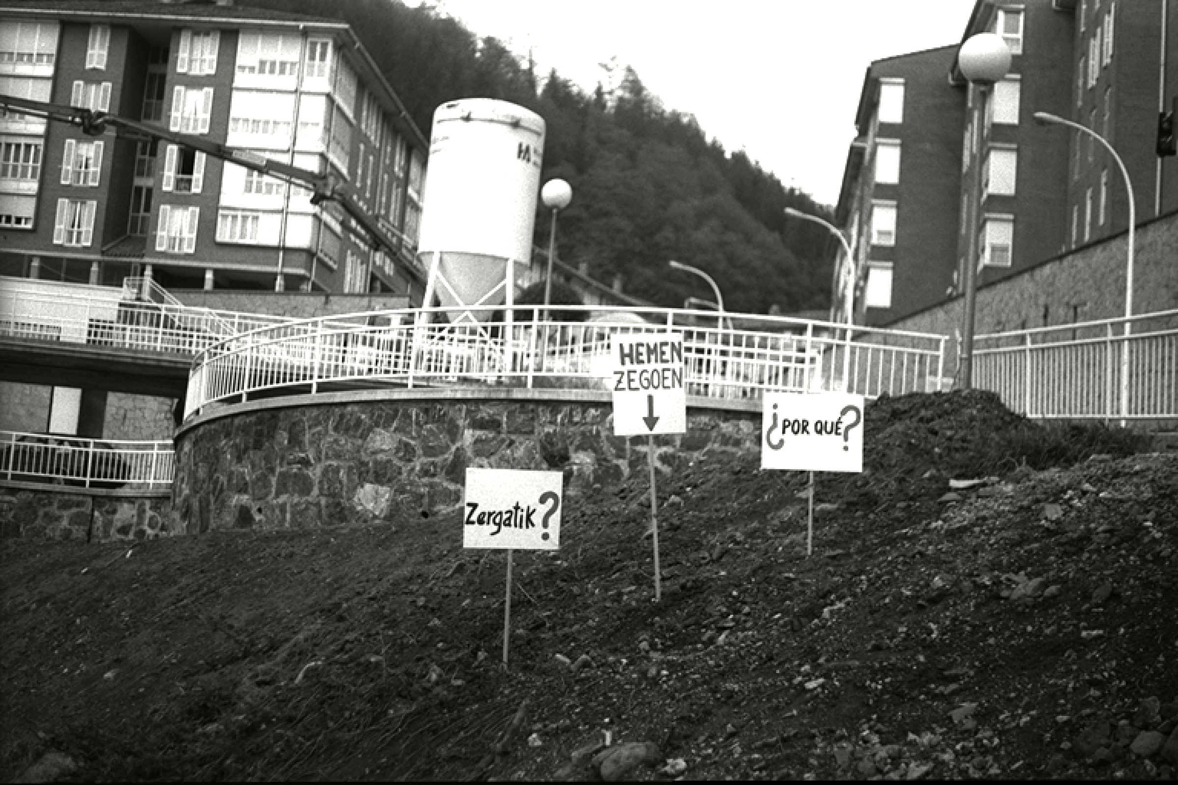 | Santa Anako parkean jarritako kartelak zuhaitz bat kentzeagatik protestatzen |