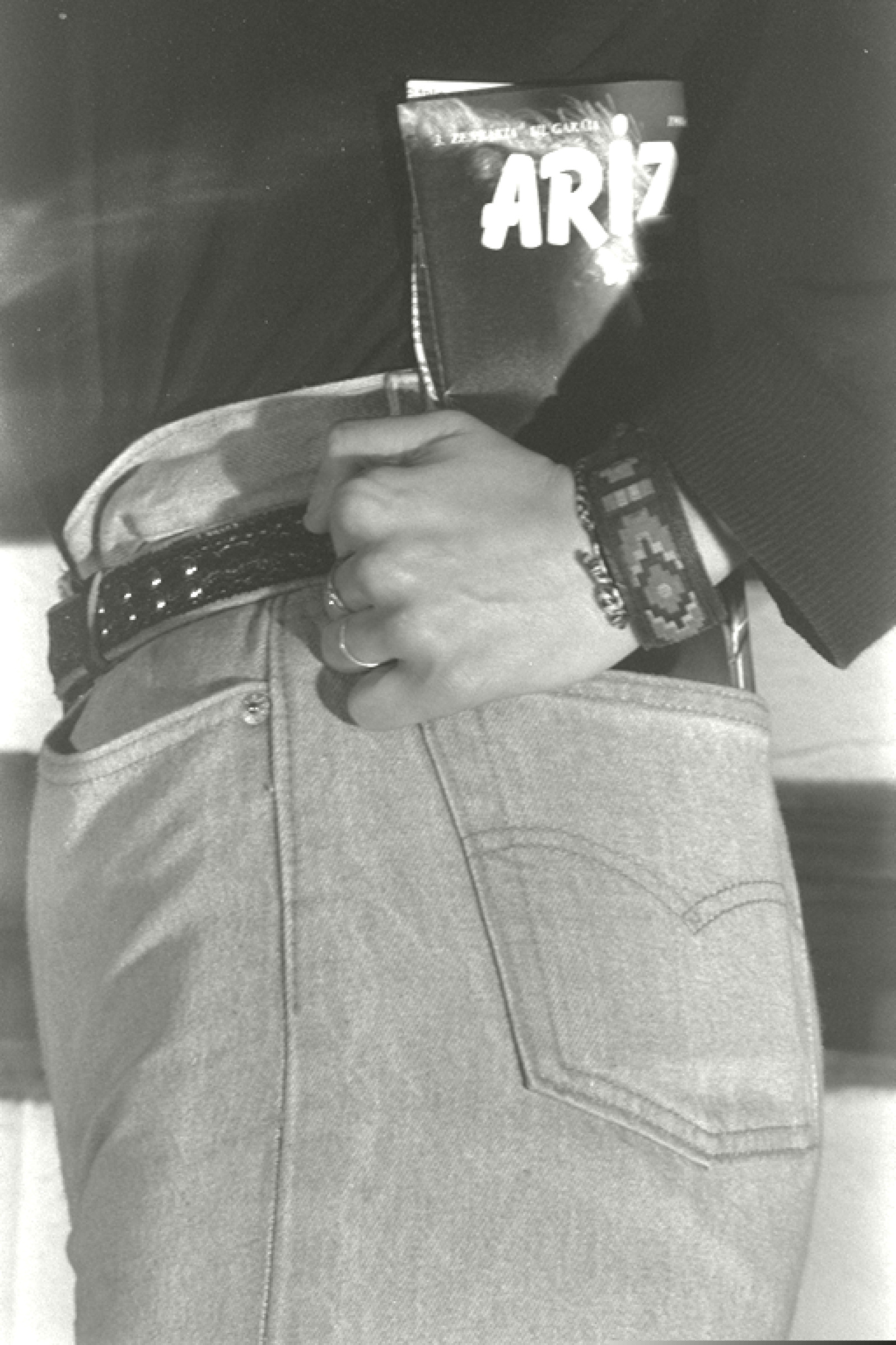 Ariz-ondo aldizkaria praketako atzekaldeko poltsikoan |