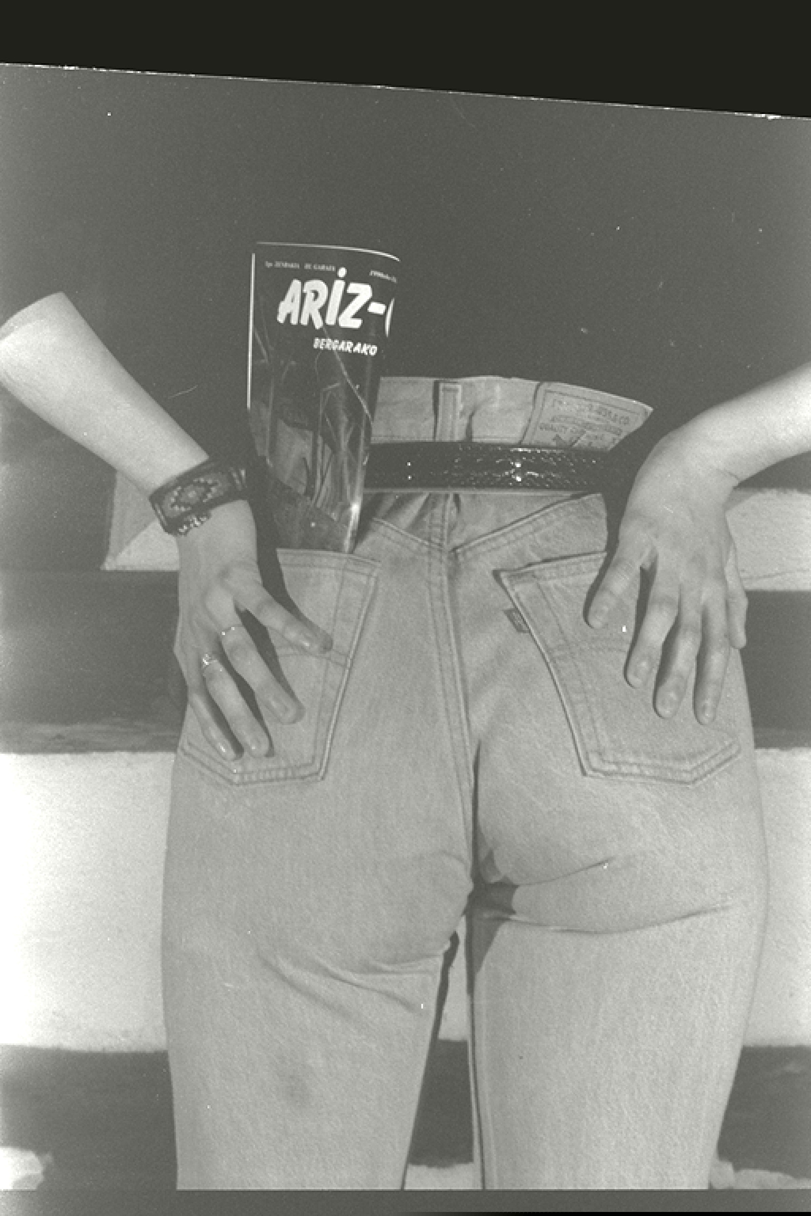 Ariz-ondo aldizkaria praketako atzekaldeko poltsikoan | Póntela, pónsela [argazki-oina, arg.] |