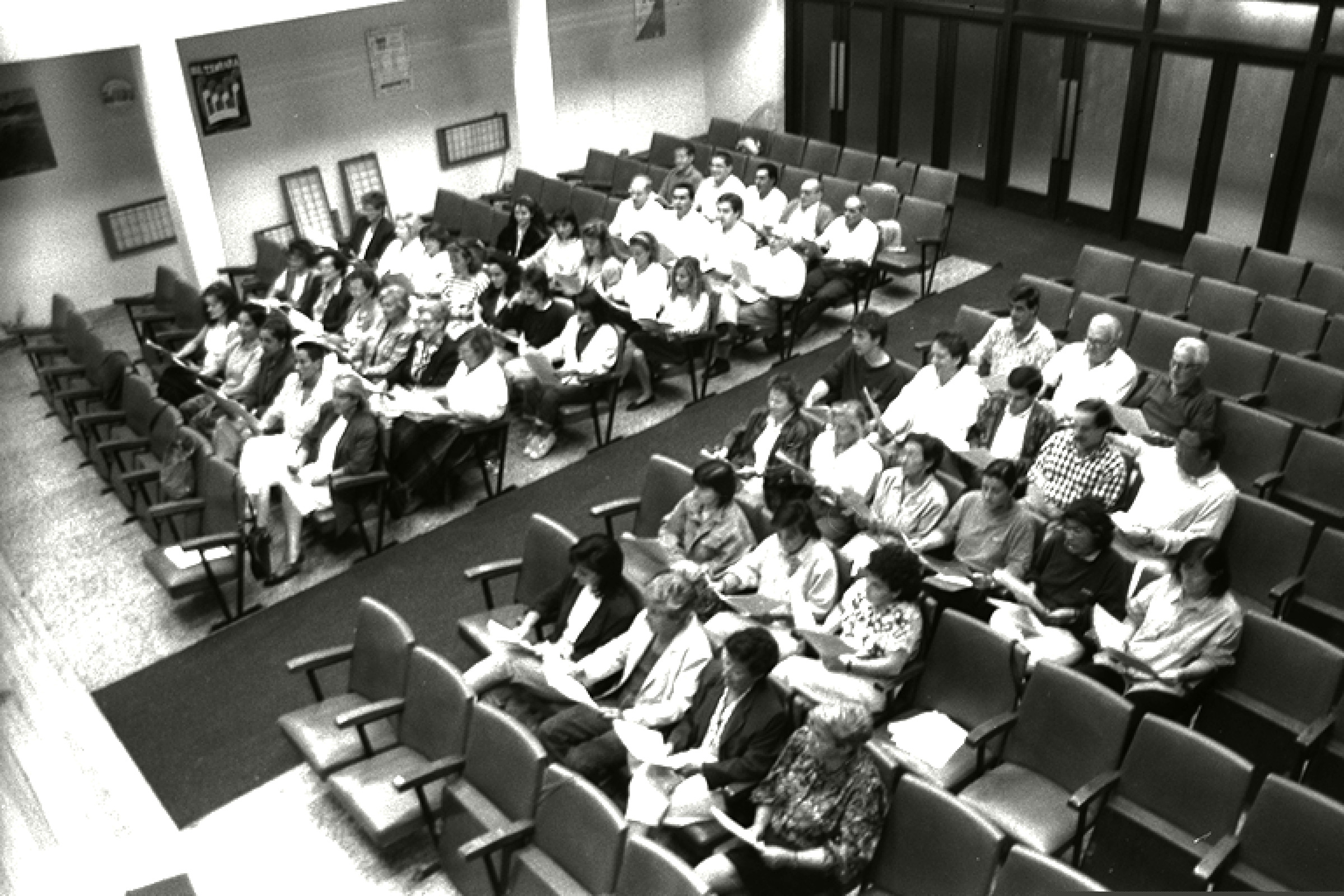 | Orfeoia Zabalotegiko aretoan entsaiatzen |
