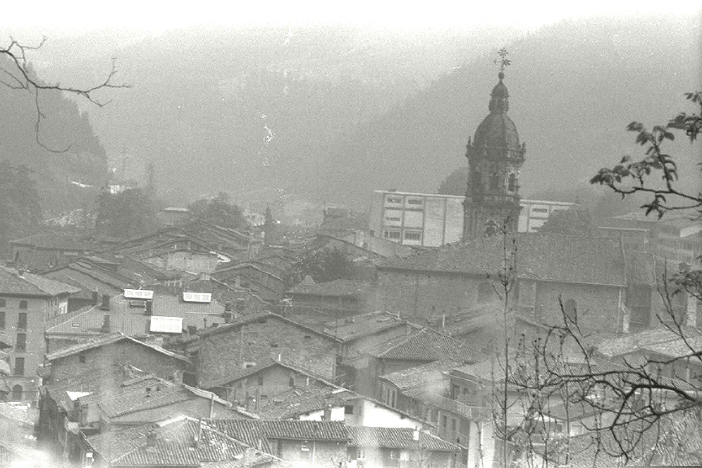 | Bergarako bista: teilatuak, eskuman San Pedro dorrea |