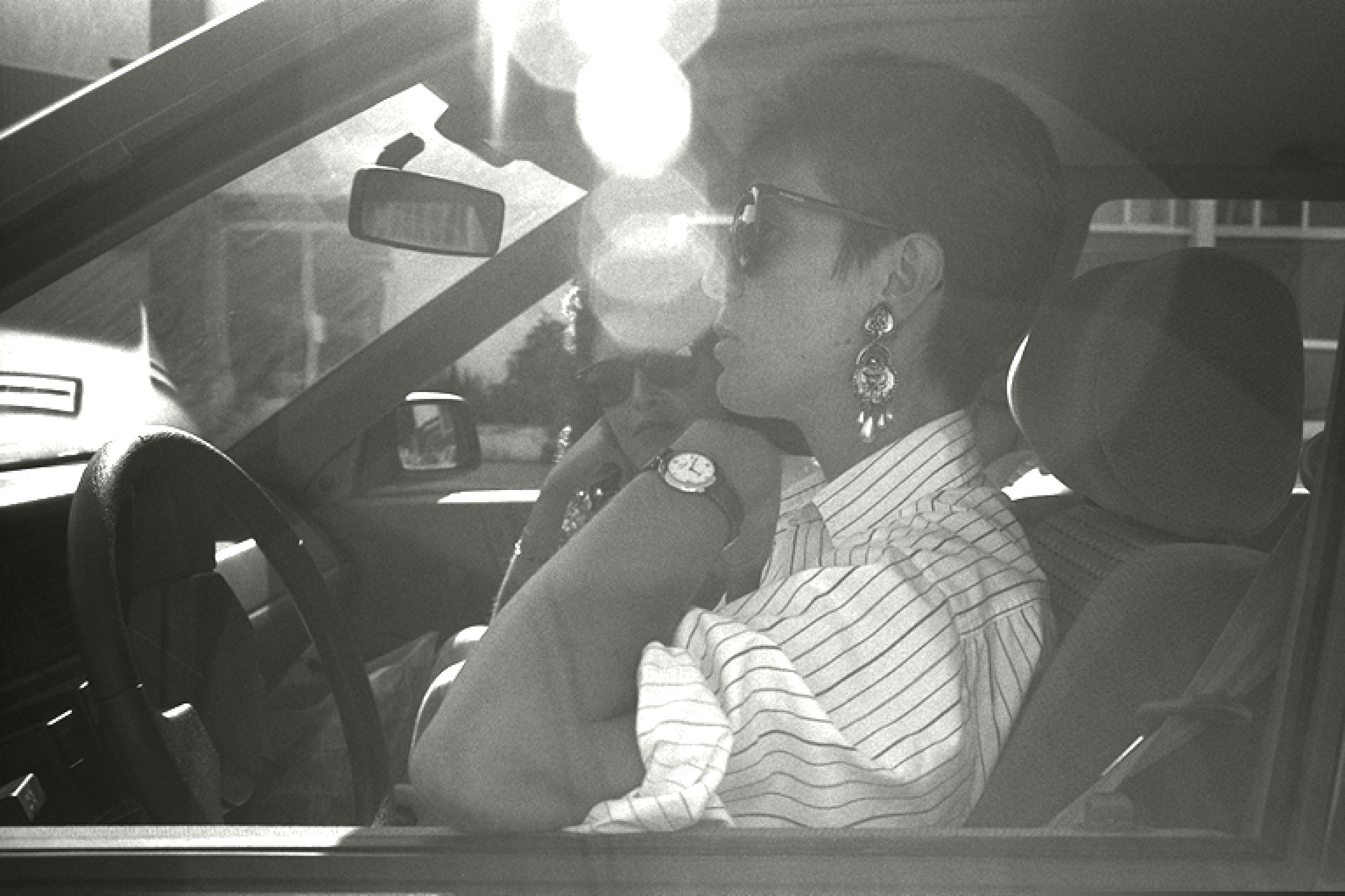 Bi pertsona kotxearen barruan |