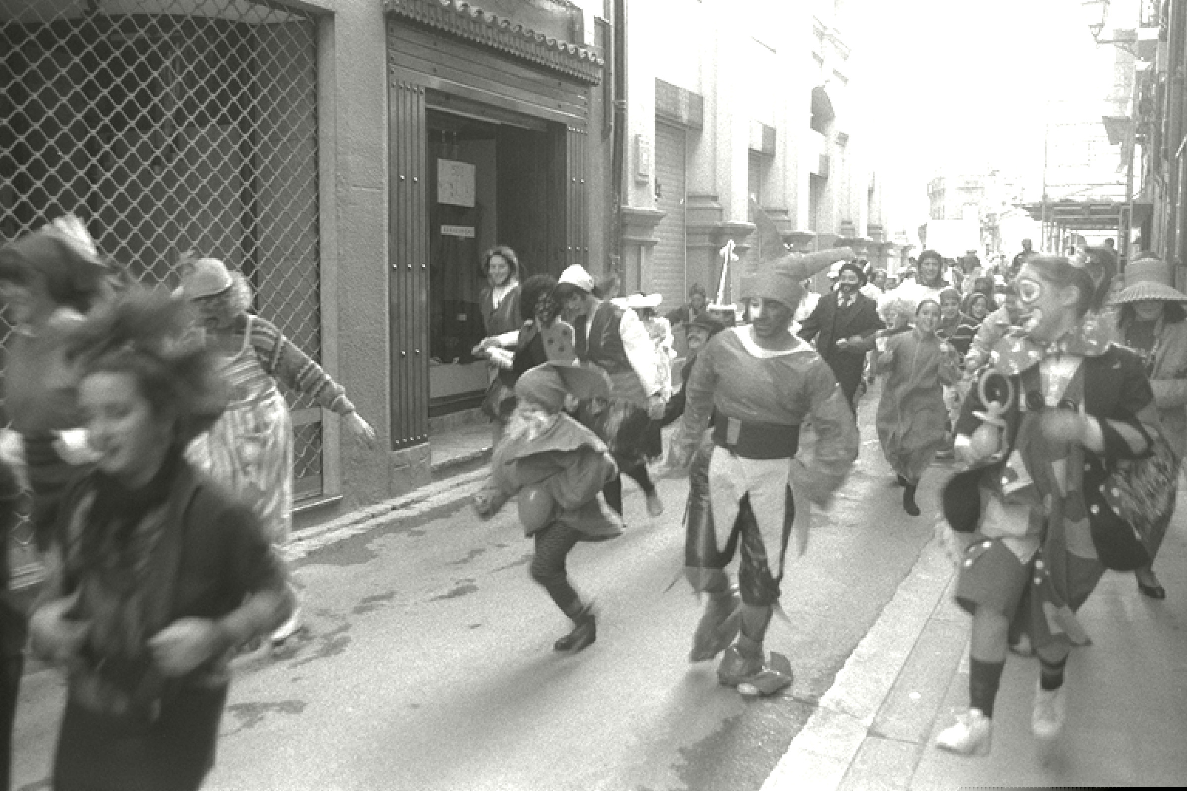 | Jendea mozorrotuta Barrenkaletik korrika |