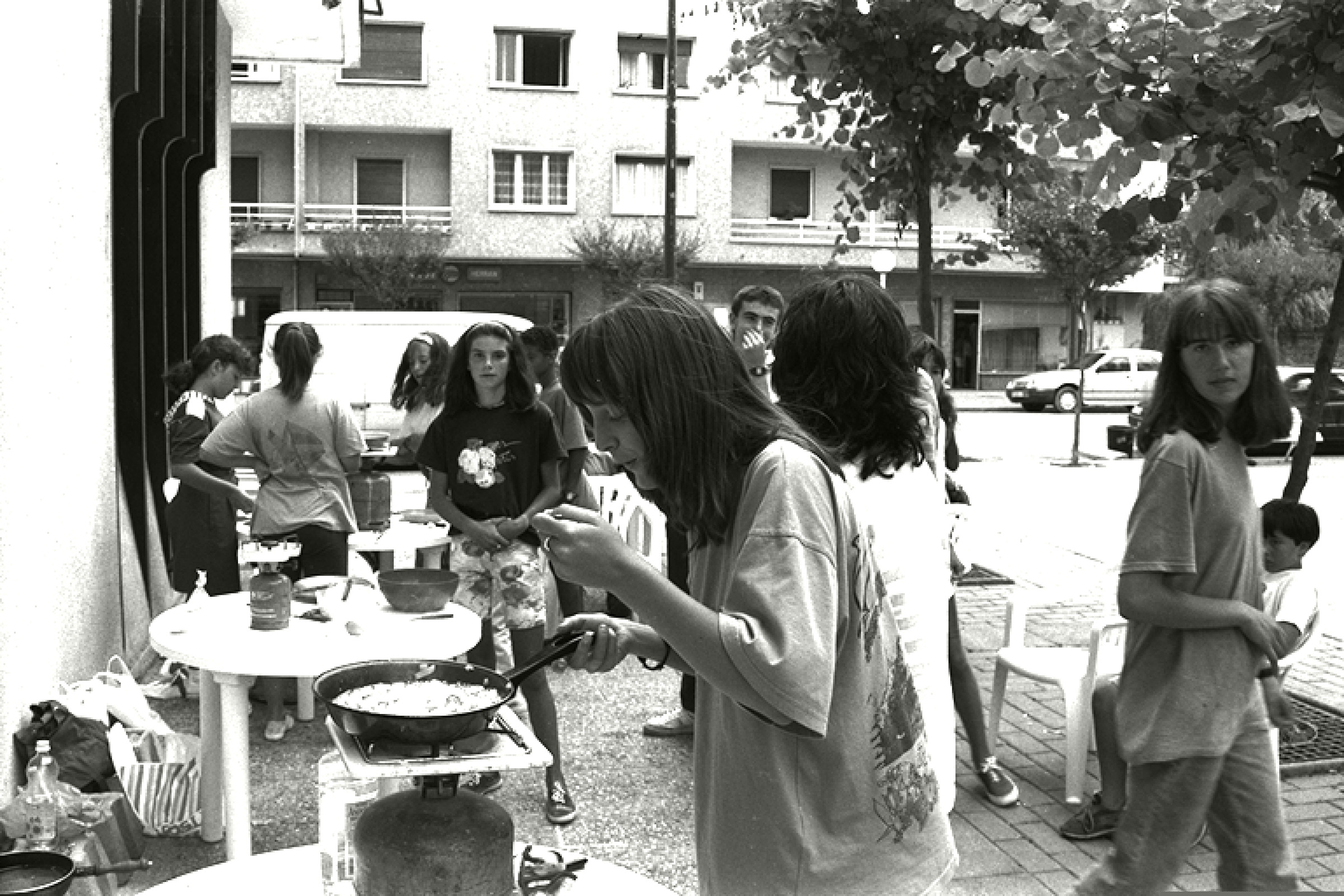 | Gazte taldea janaria prestatzen kalean |