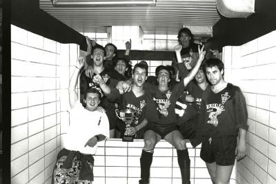 Futbol jokalariak aldageletan koparekin |