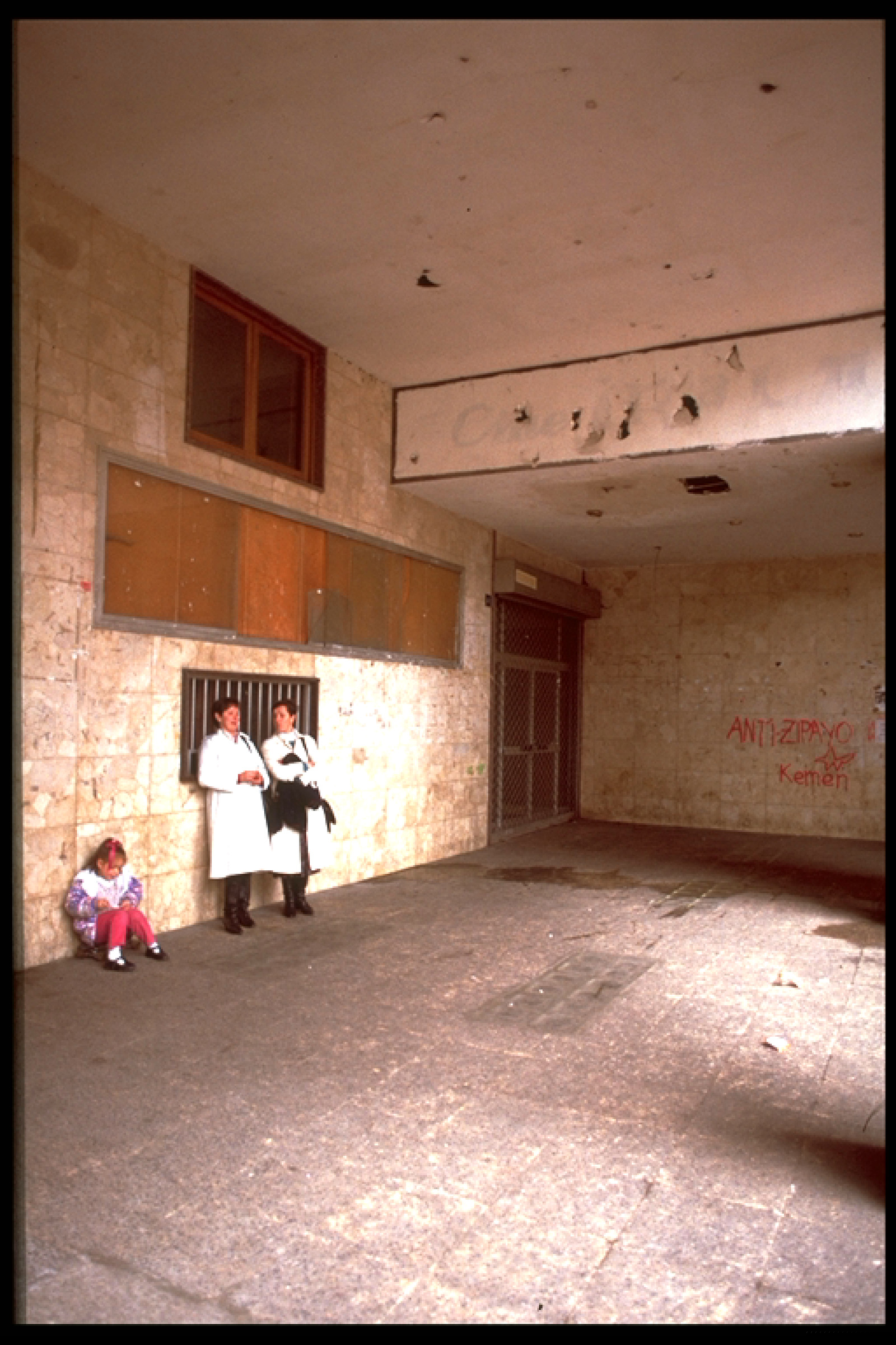 Irala zinearen kanpokaldea, txartel-lehiatila eta atea |