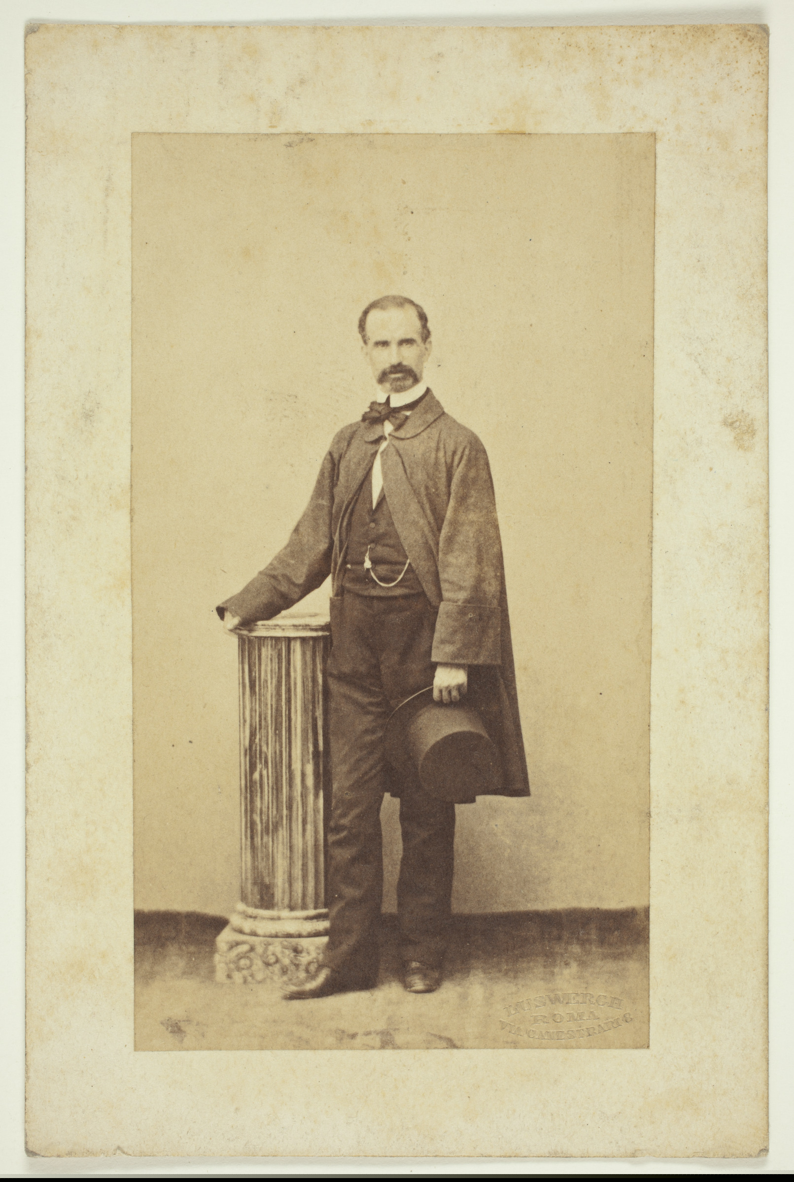| Gizon baten erretratua: plano osoa, zutik, xistera eskuineko eskuan eta ezkerrekoa zutabe batean bermatuta | El Conde del Valle, Don José María de Múrua y Gaytán de Ayala [ms. v.] Luswergh, Roma, Via Canestrari, 8 [imp. r.] |