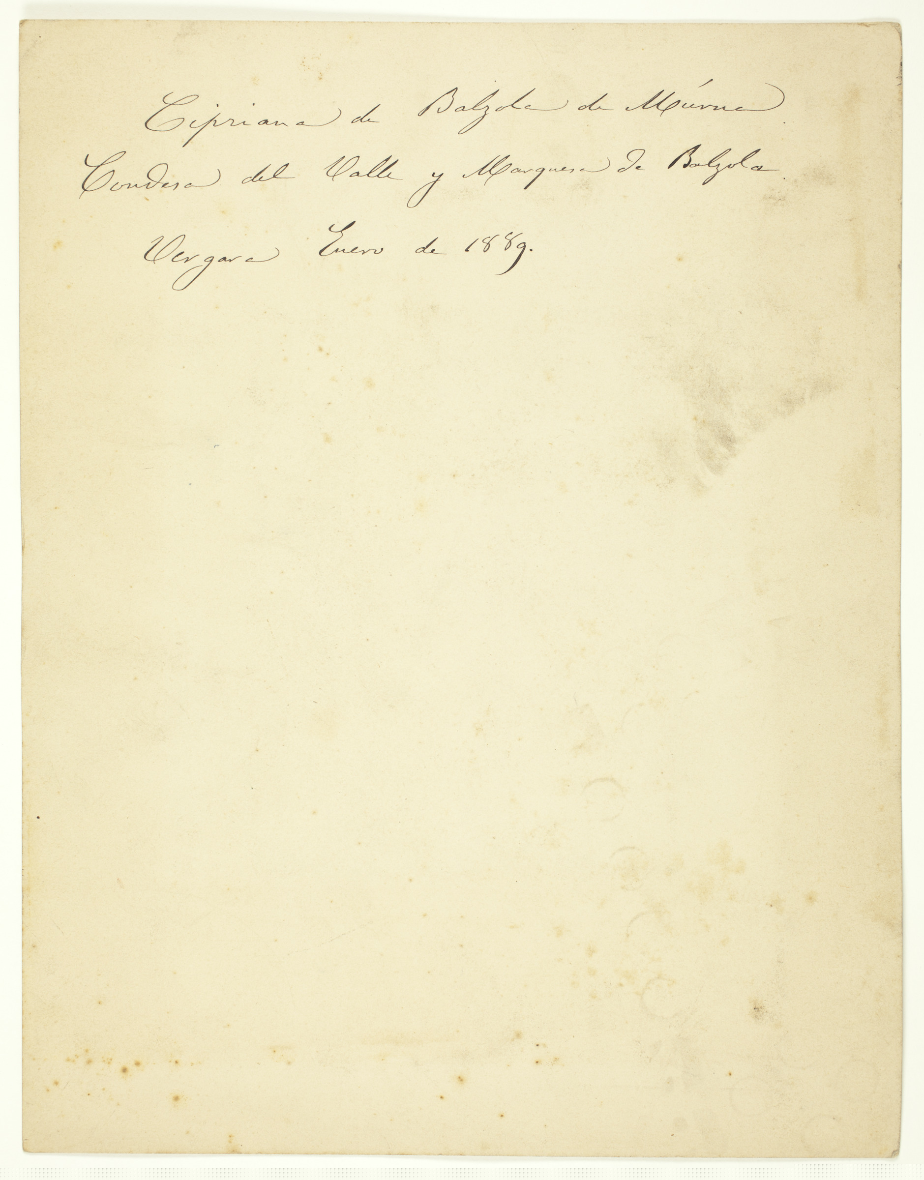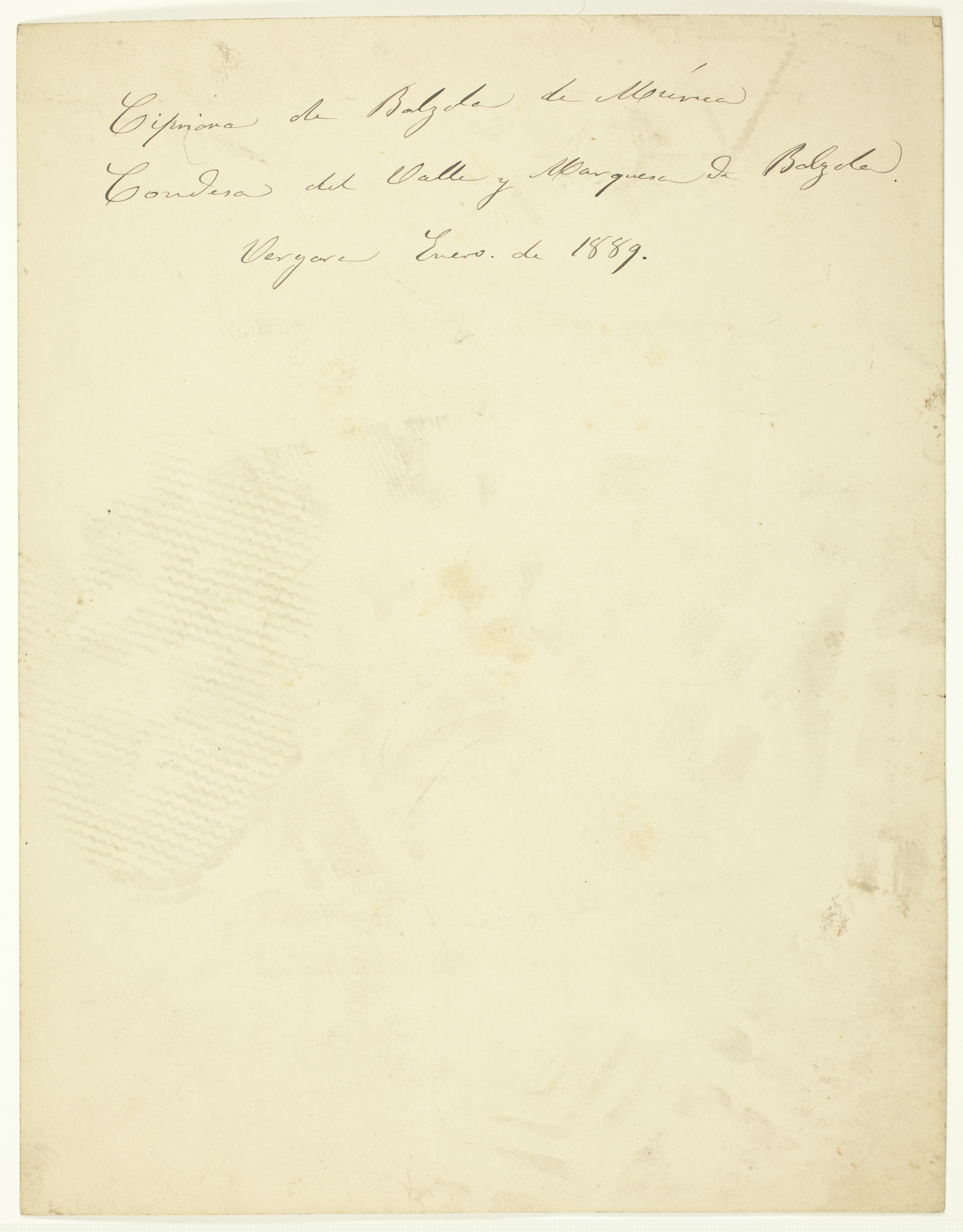 | Emakume erretratua | Cipriana de Balzola de Múrua, Condesa del Valle y Marquesa de Balzola, Vergara Enero de 1889 [ms. v.]; Ignº de Múrua [imp. r.] |