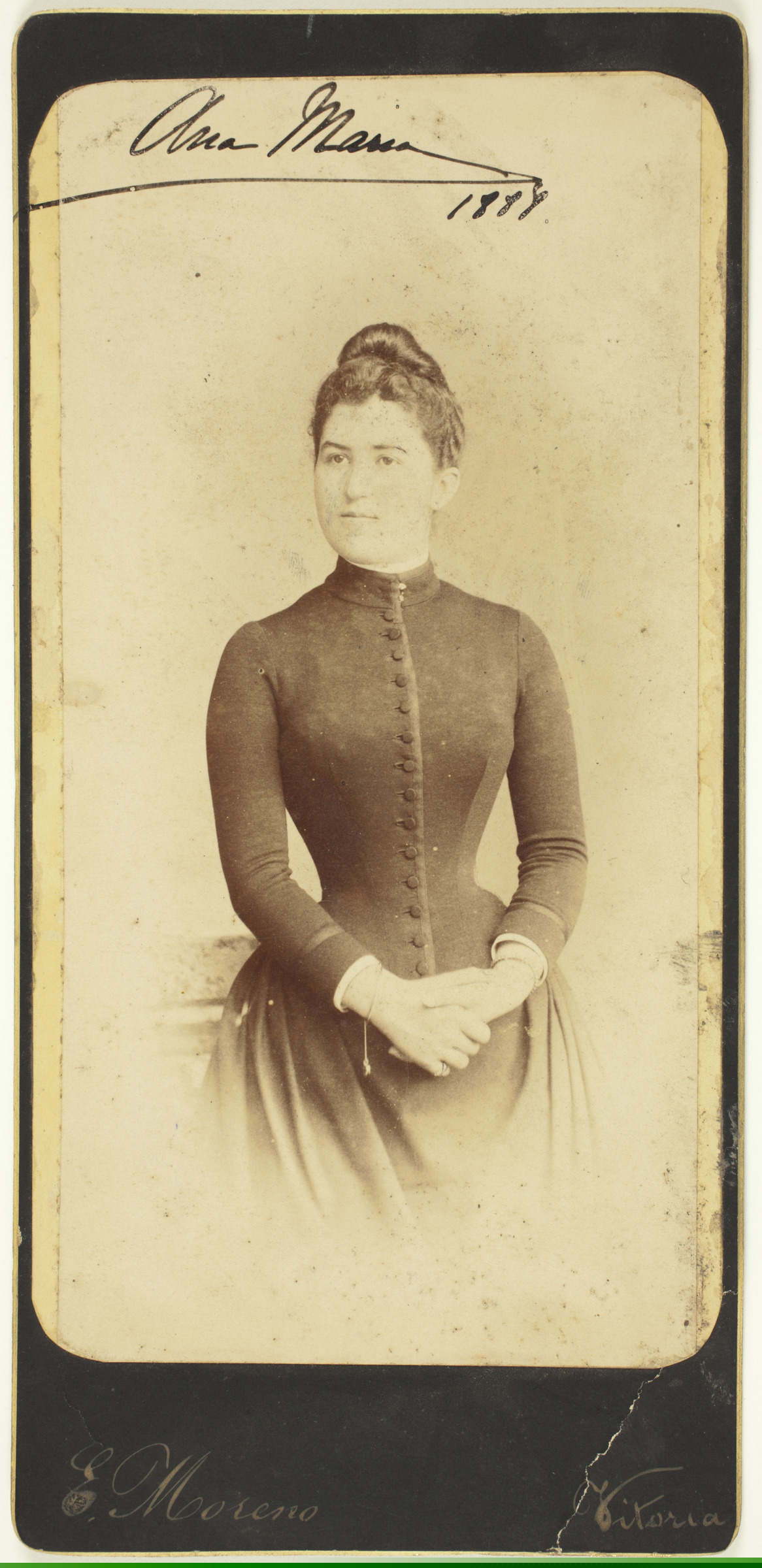 | Emakume erretratua | [Sinadura:] Ana María, 1888 [ms. r.]; E. Moreno, Vitoria [imp. r.] |