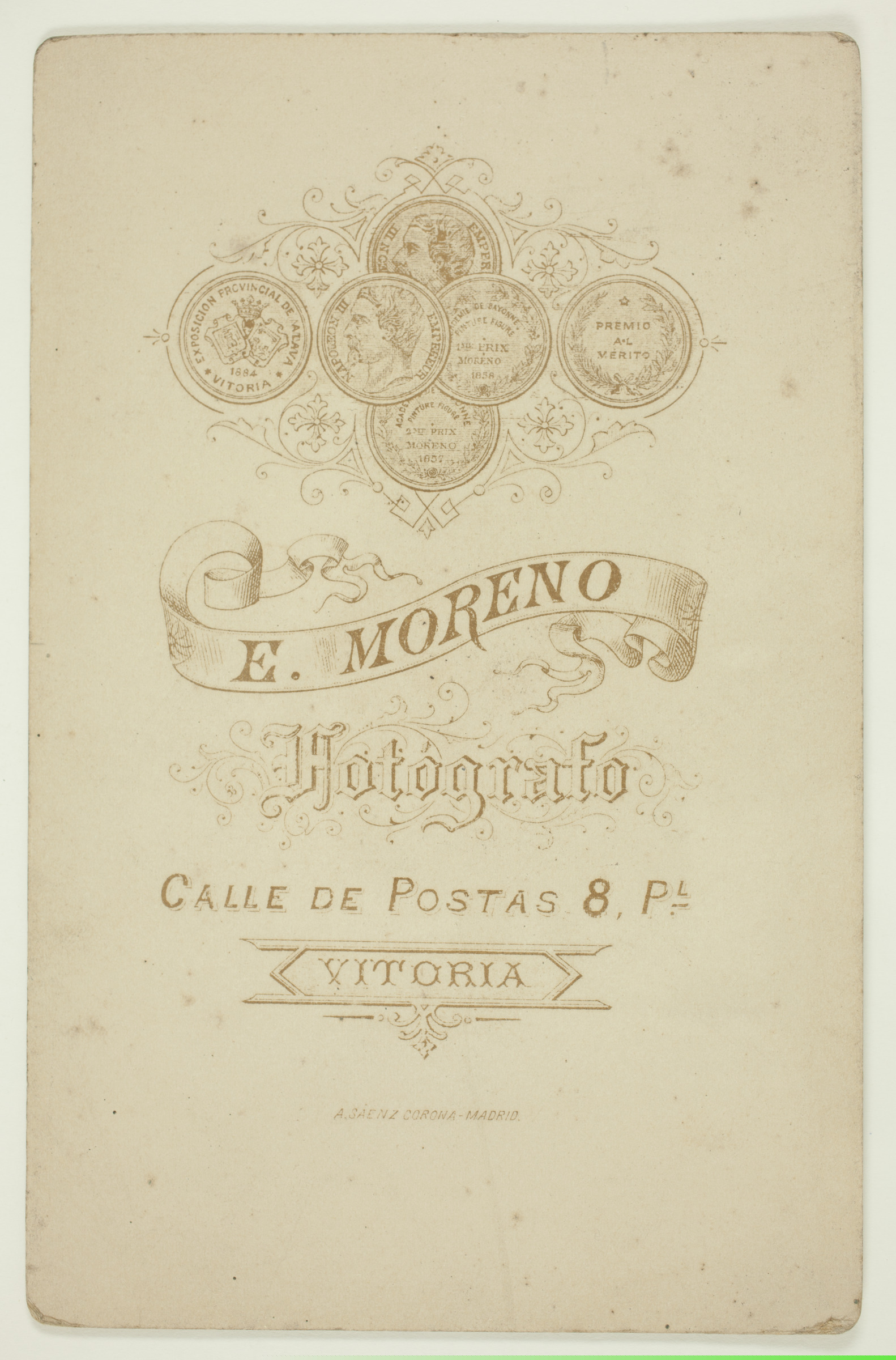 Emakume erretratua | E. Moreno, Vitoria [imp. r.]; E. Moreno, fotógrafo, Calle de Postas 8, pl. Vitoria [imp. v.] |