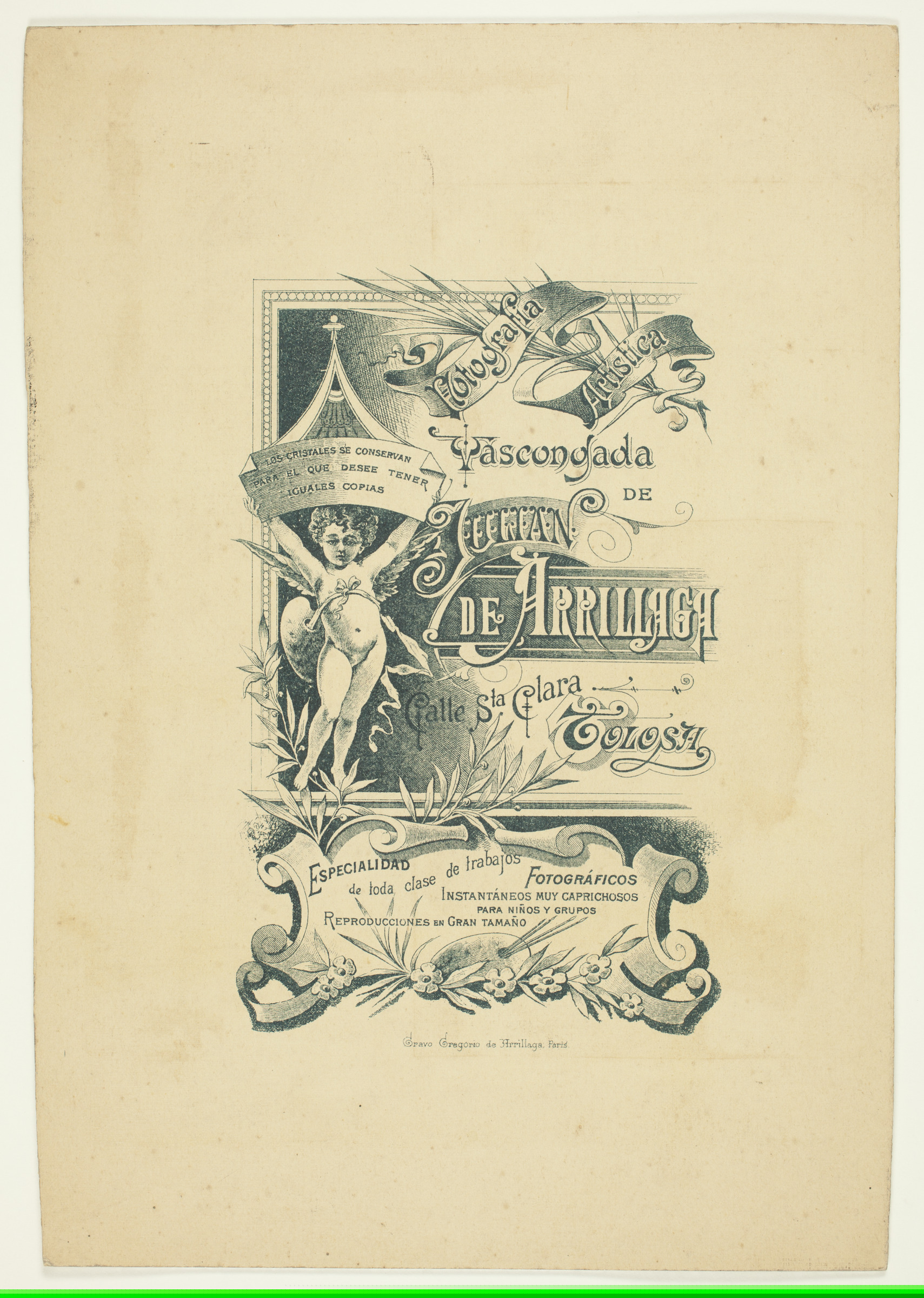 Bi emakumeren erretratua txakurrarekin | [sinadura:] Ana María , [sinadura:] Pilar, Vergara Juli[o] 189[5], Julio 1895 [ms. r.]; Julián Arrillaga, Tolosa [imp. r.]; Fotografía Artística Vascongada de Julián de Arrillaga, Calle Sta. Clara, Tolosa [imp. v.] |