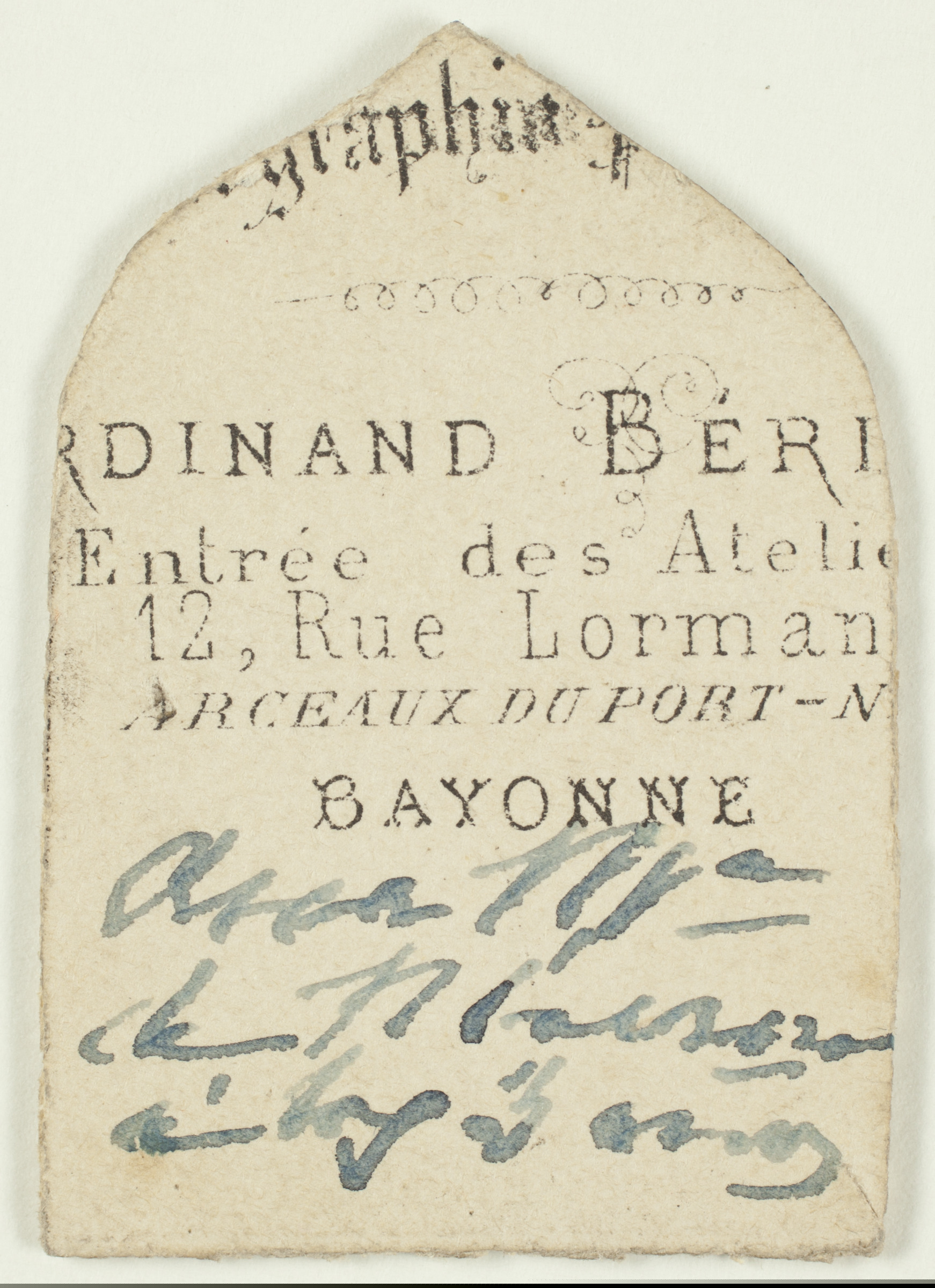 | Neskatila erretratua | Ana Mª de Múrua a los 3 años [ms. v.]; [Fe]rdinand Béri[llon], 12, Rue Lorman[...], Arceaux du Pont-N[euf?], Bayonne [imp. v.] |